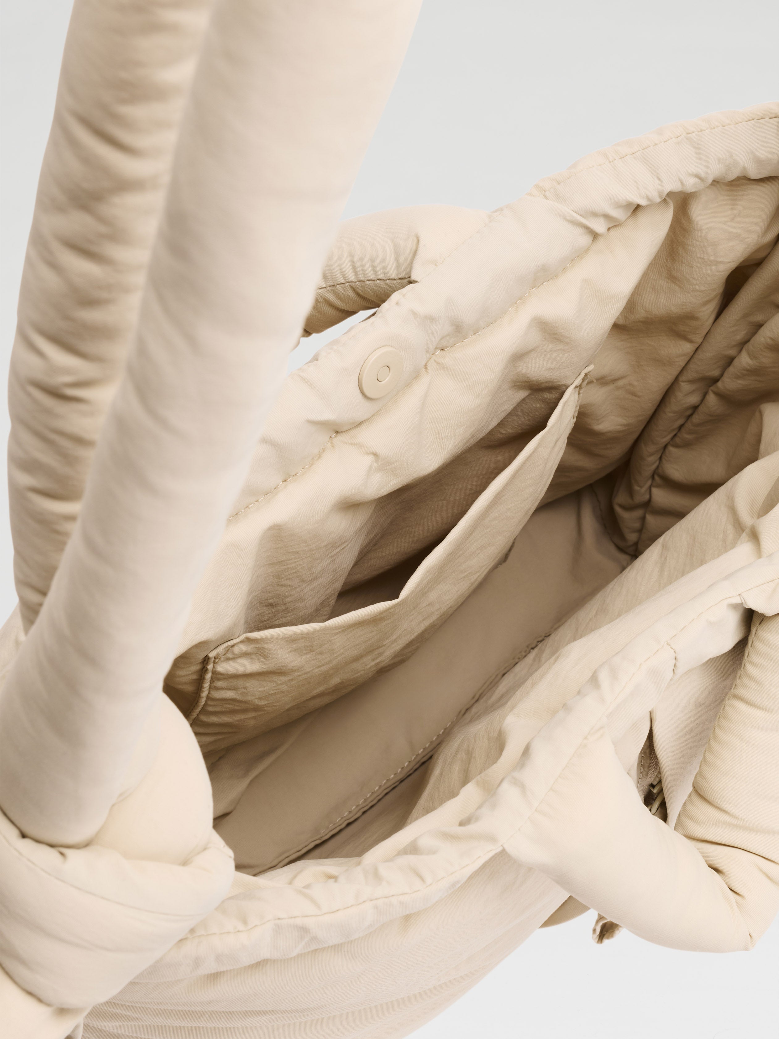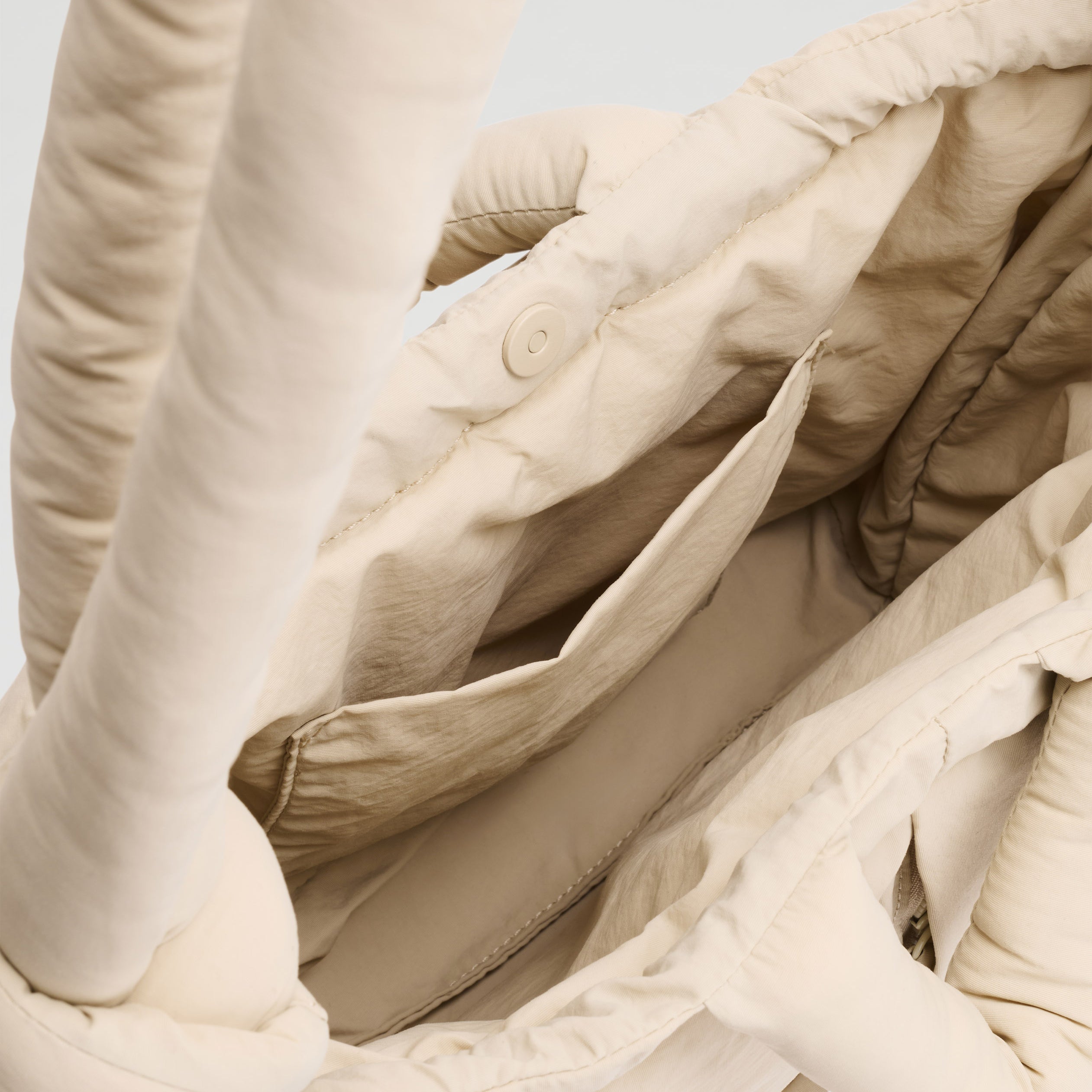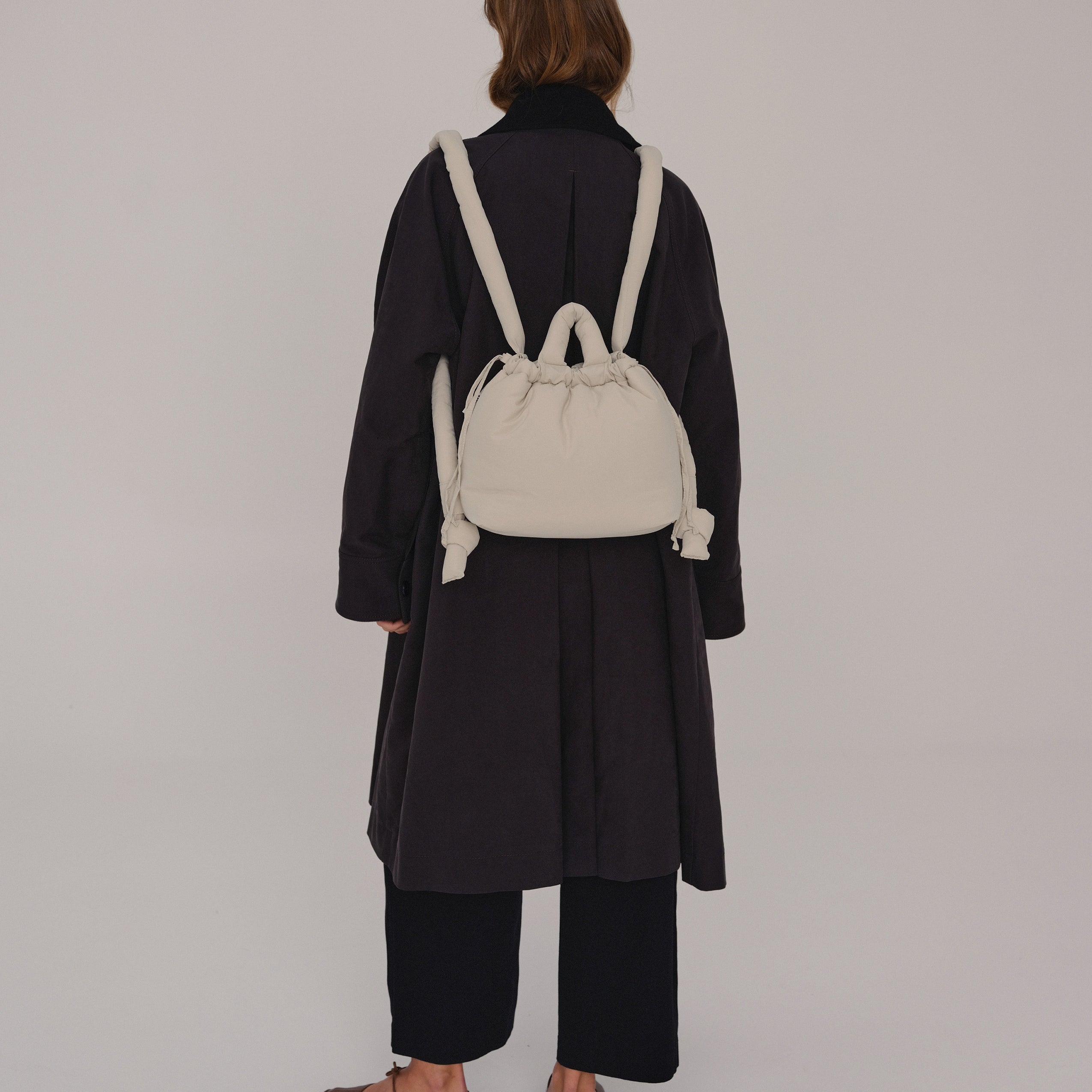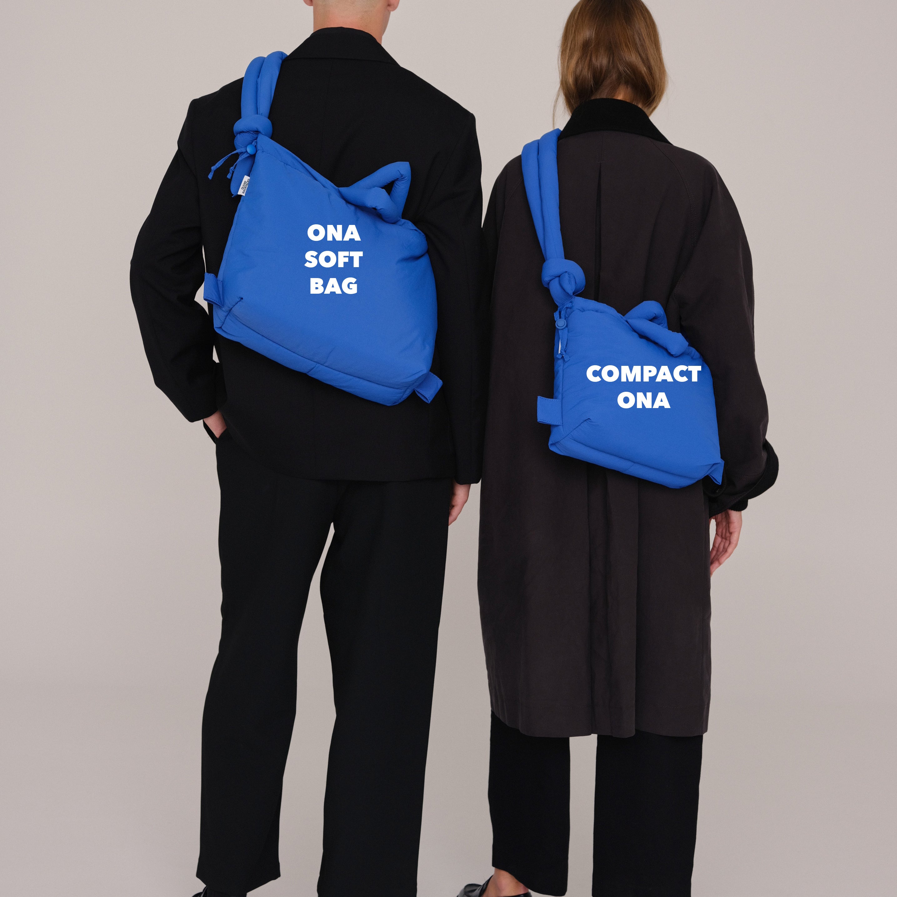 The compact size of our icon Ona Soft Bag. A soft, padded bag with a unique design. Made of a lightweight, padded fabric, giving it a cushioned look. The bag has two puffy straps that can be convertible into a backpack. It's designed to hold a fair amount of items (including a 14" laptop)while maintaining a chic, minimalist aesthetic.