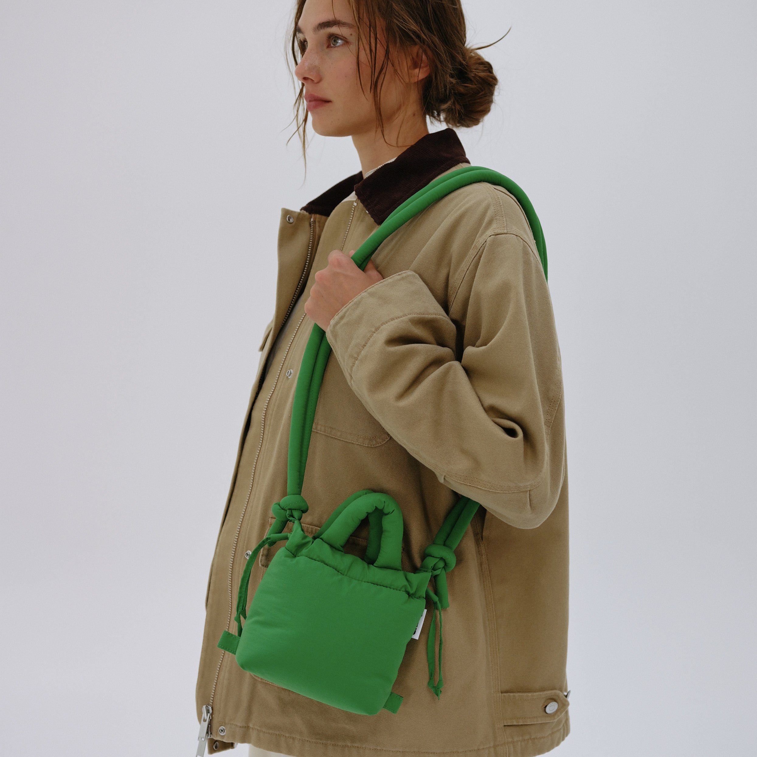 The Micro Ona Soft Bag can be used as a shoulder bag, crossbody bag, or backpack, expanding its range of use and optimizing its lifespan. This versatility aligns with responsible and sustainable consumption by reducing the need for multiple bags for different occasions.