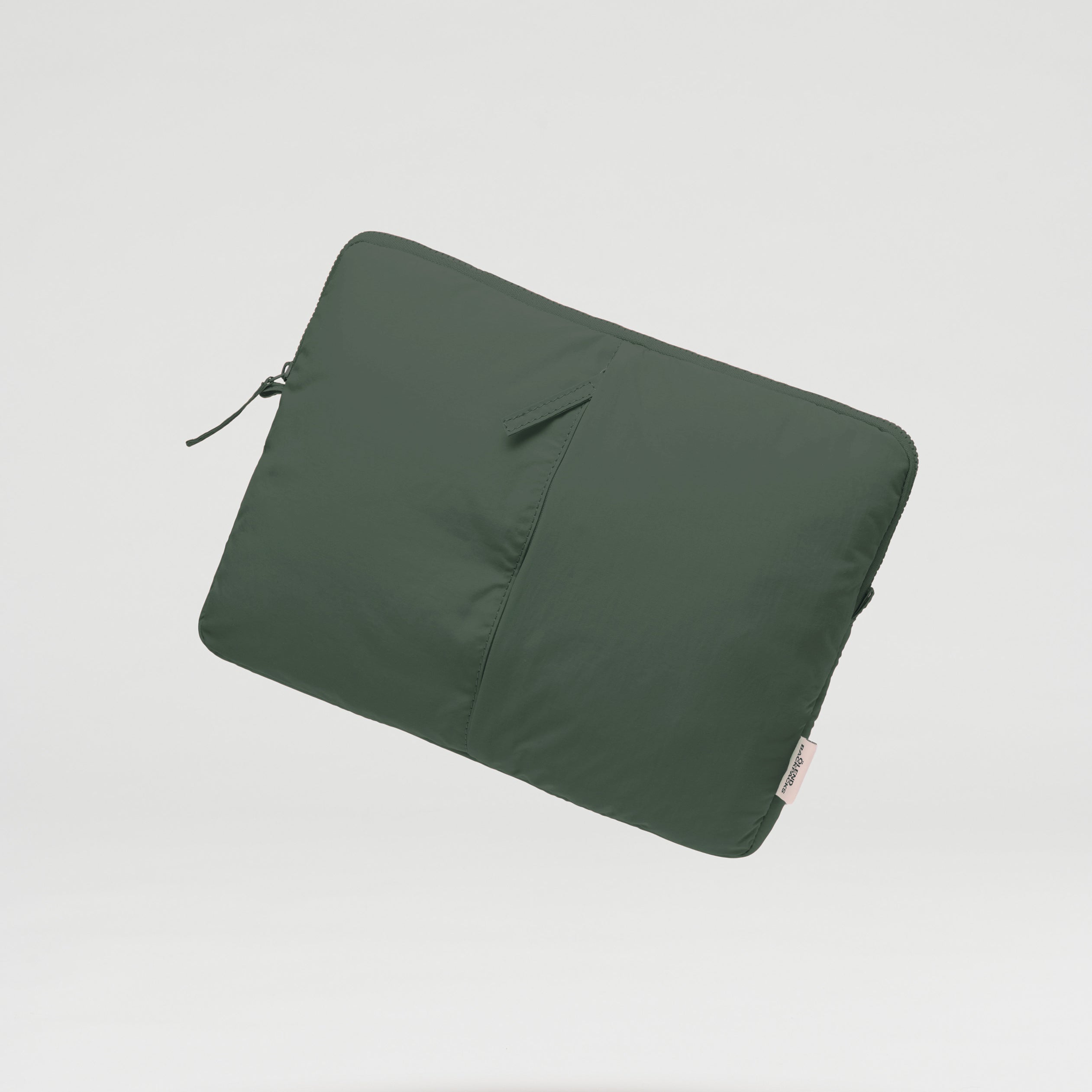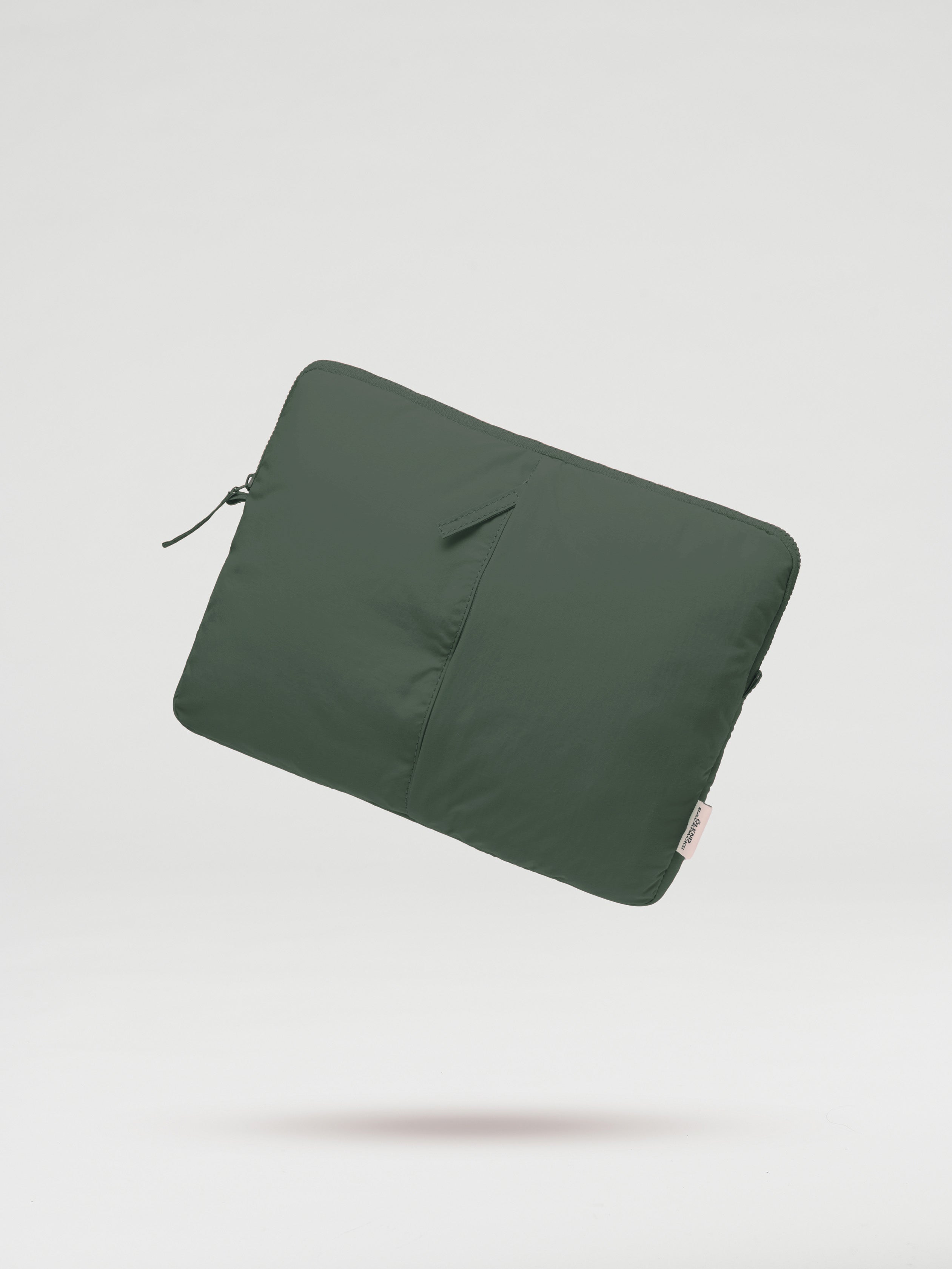 Soft and padded laptop cover with a front zippered pocket.