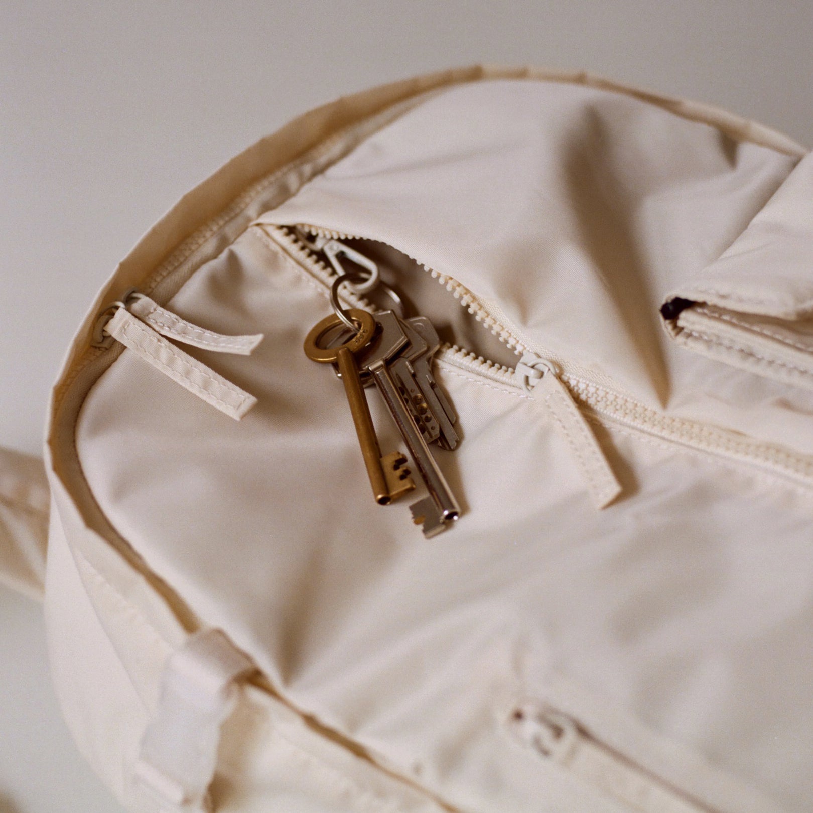Hook to attach your keys is hidden in the front pocket.