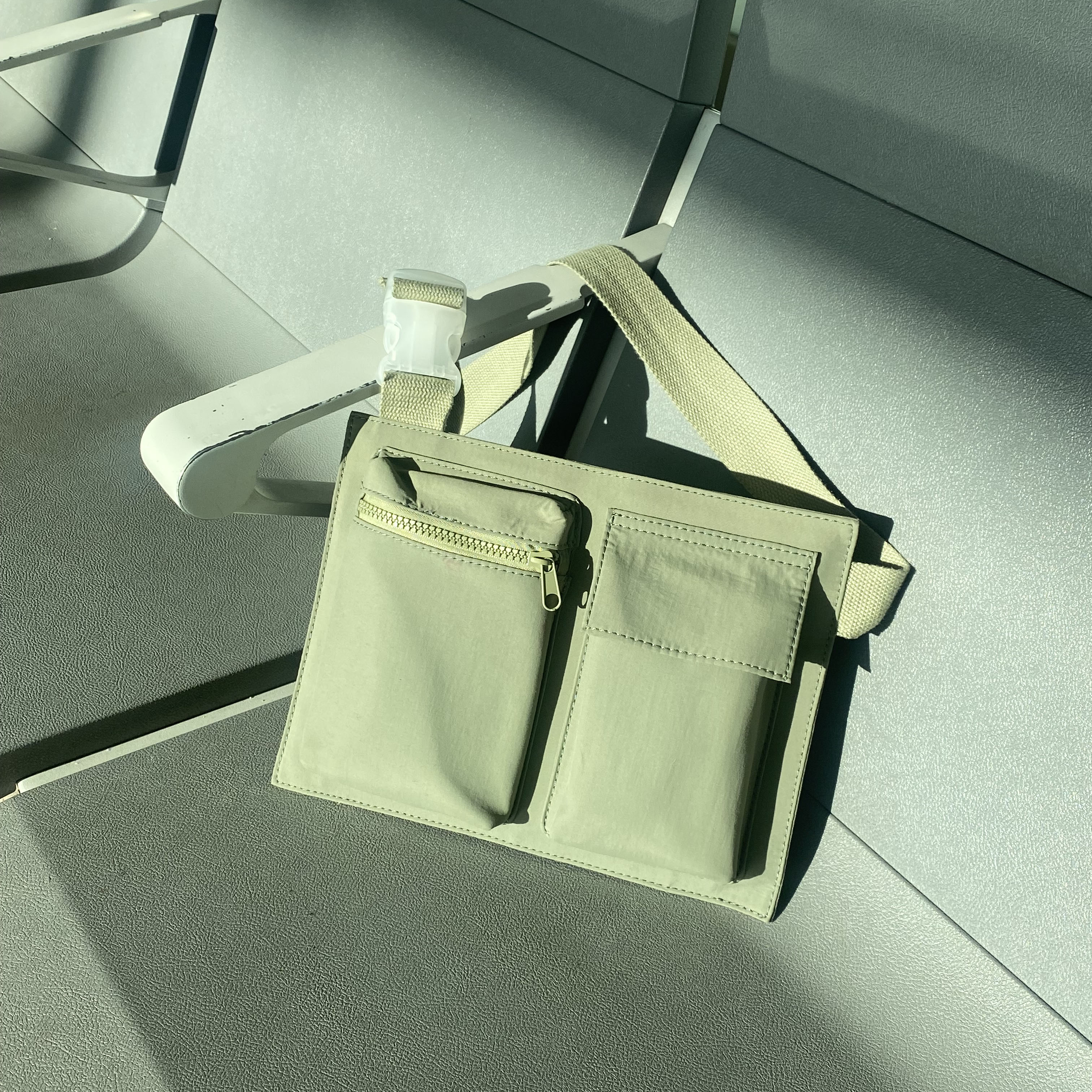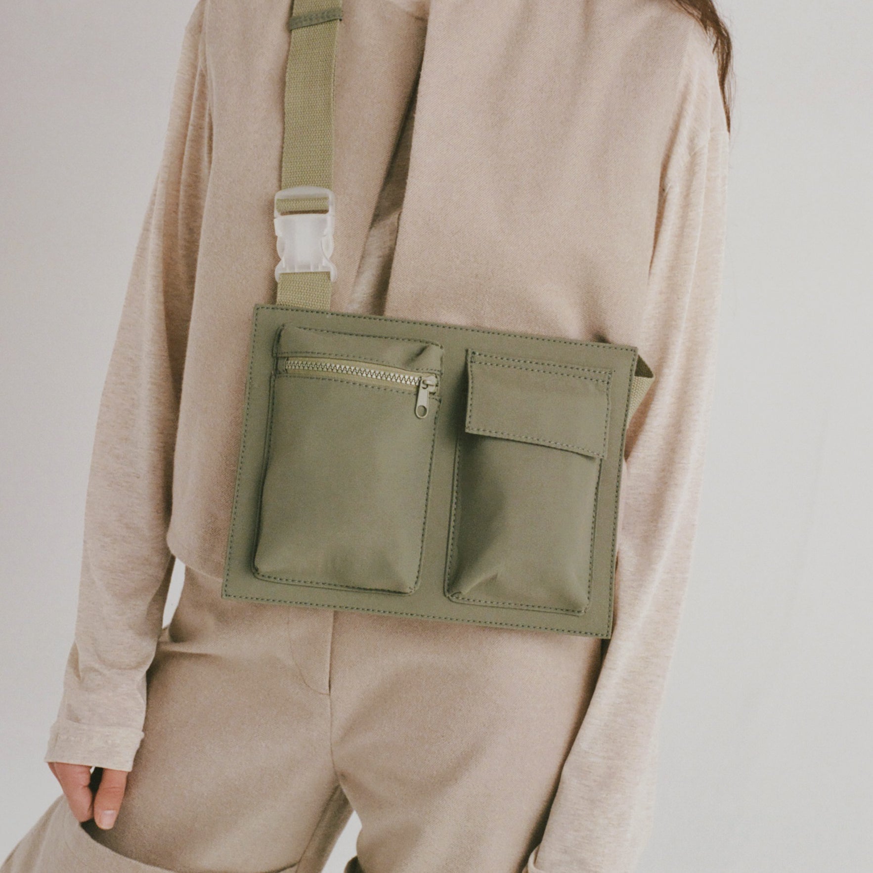 - Zippered front pocket