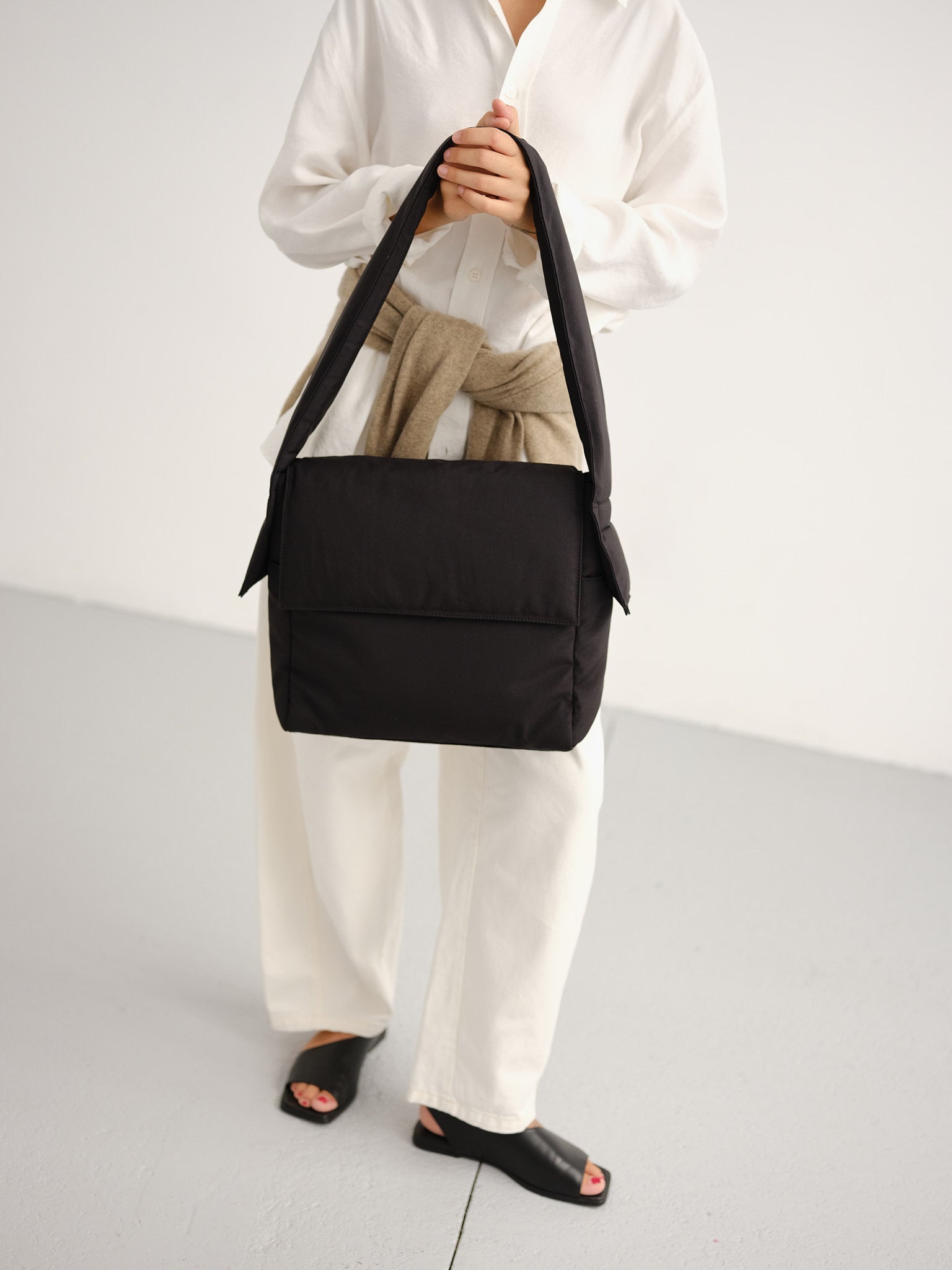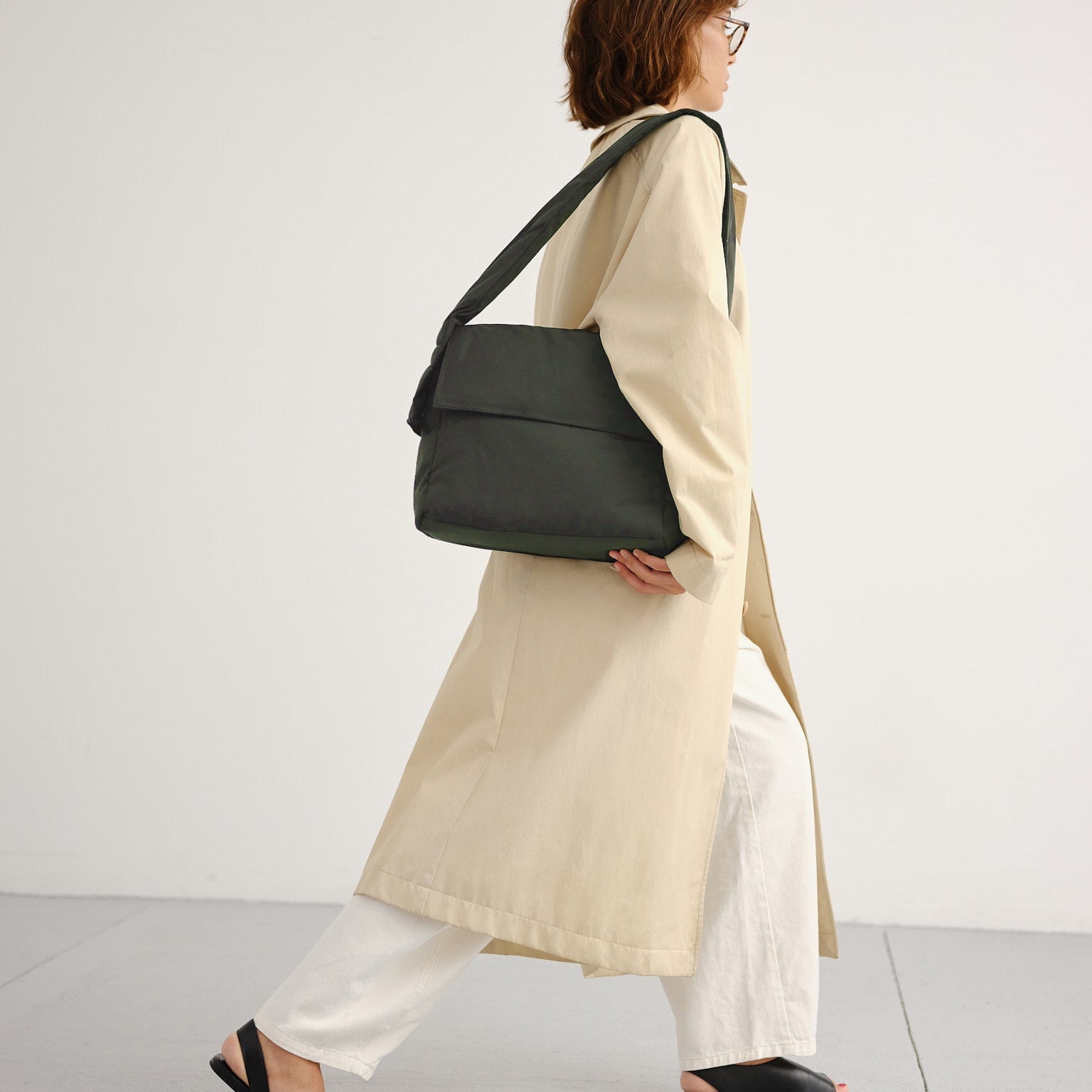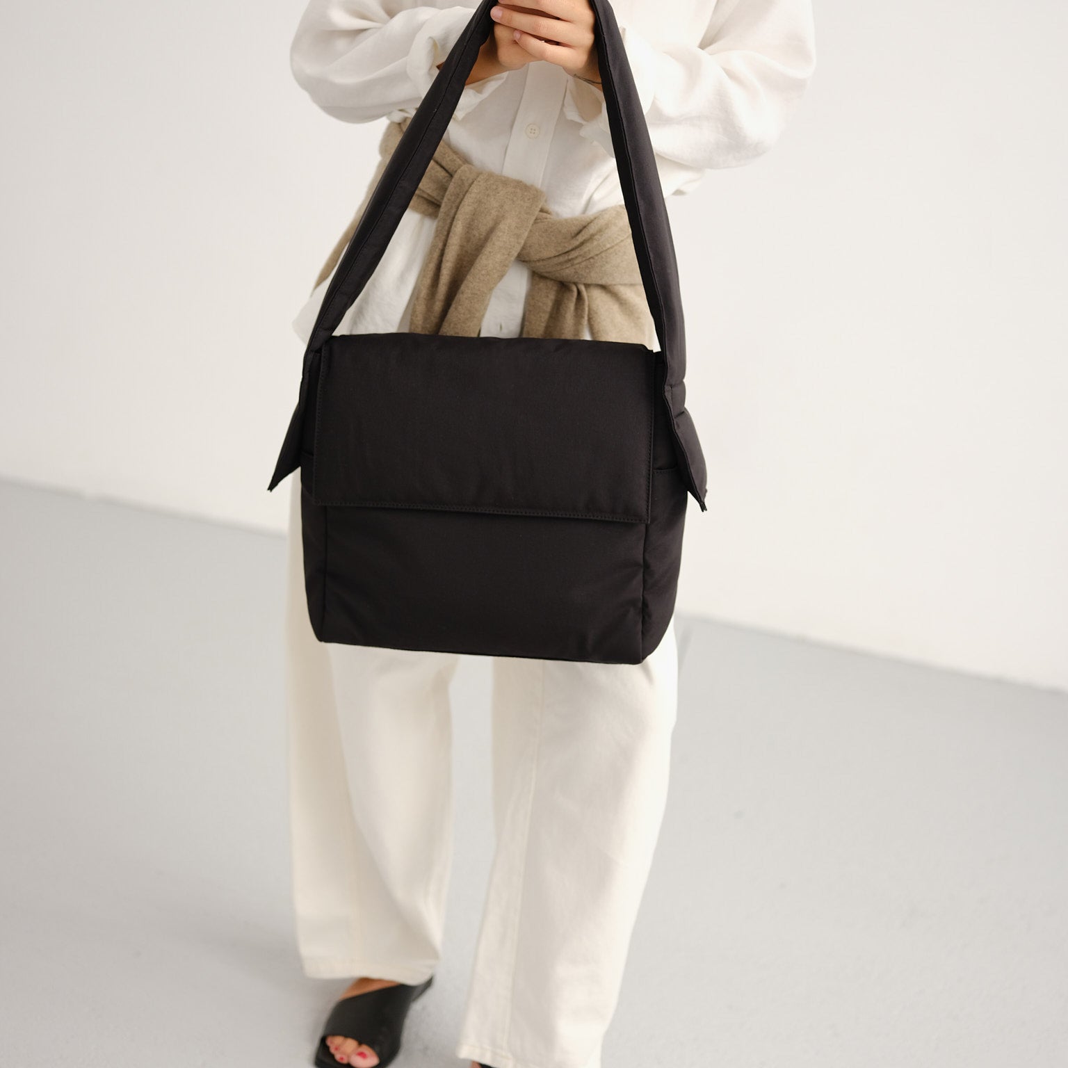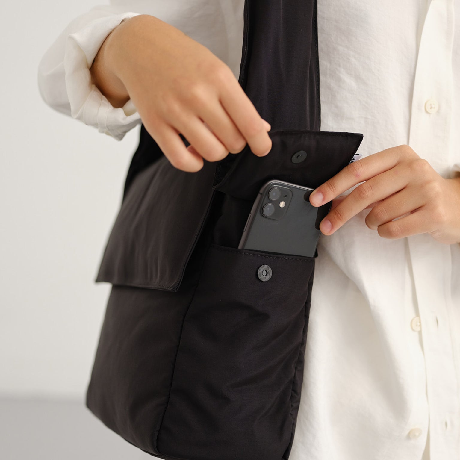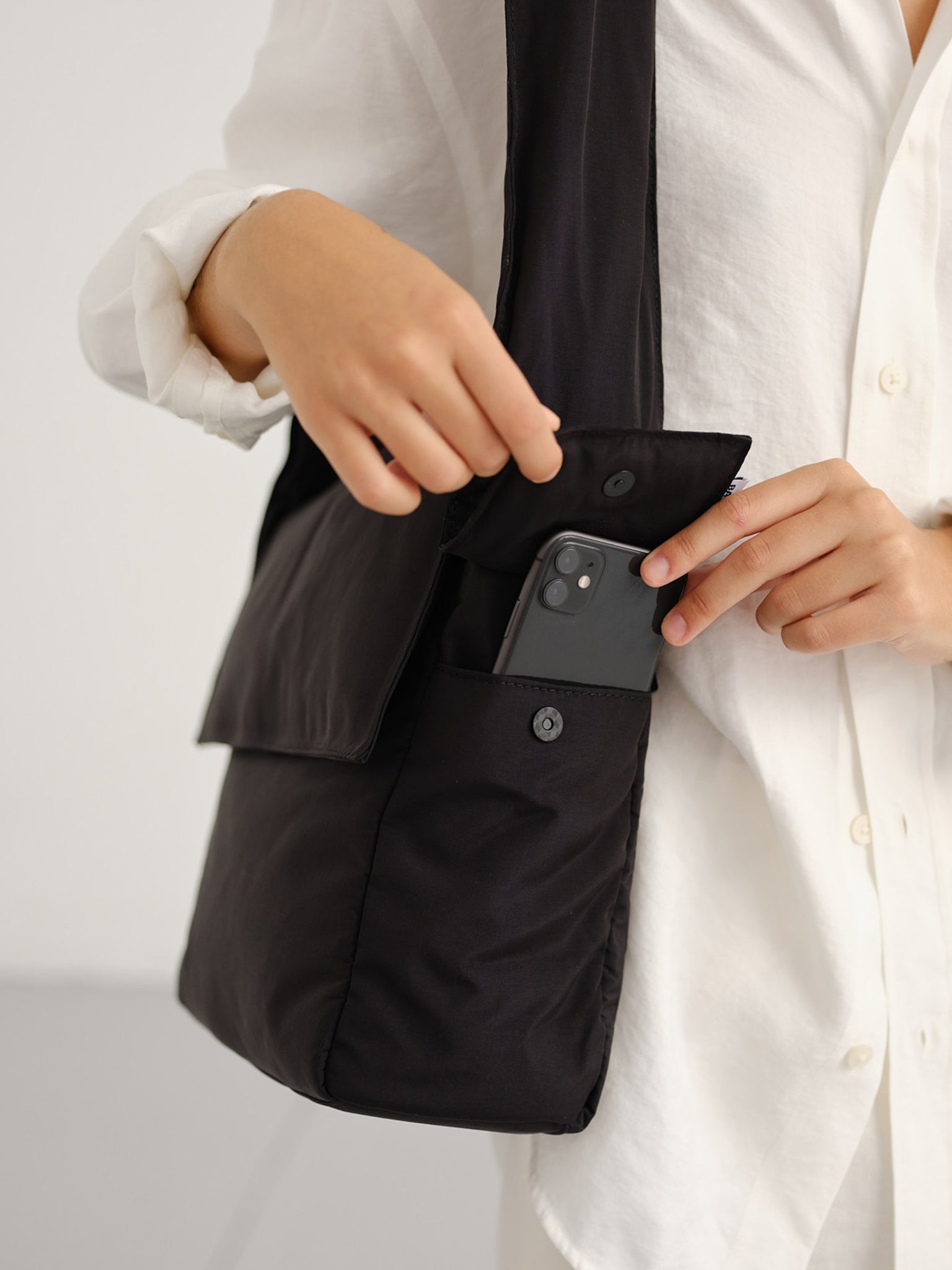 From the product photos and pictures of others wearing it online, it looked like the bag would sit around the waist, but in reality, it hangs lower—closer to the hips.