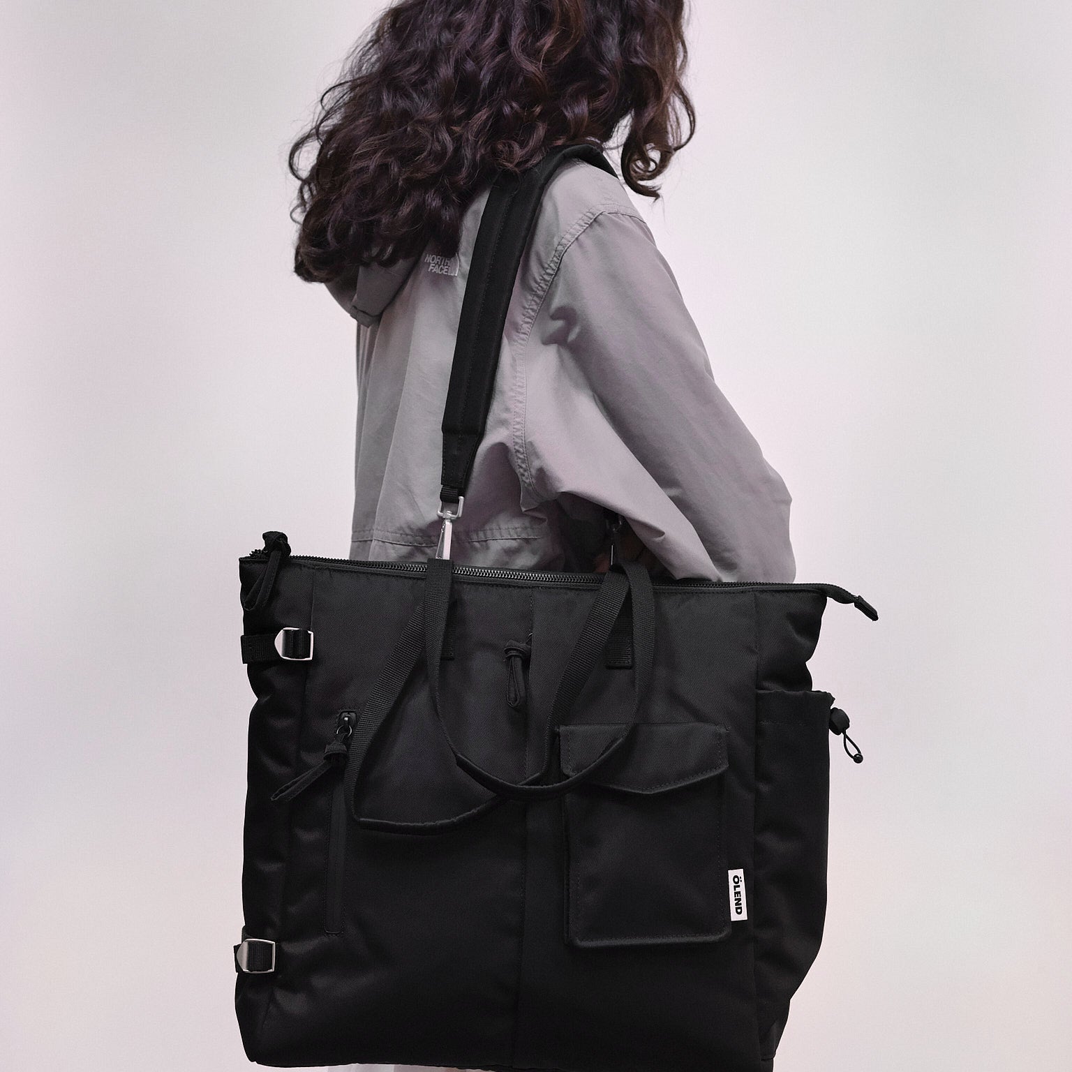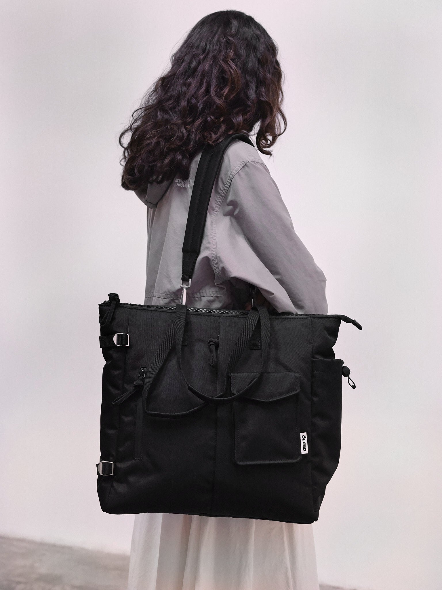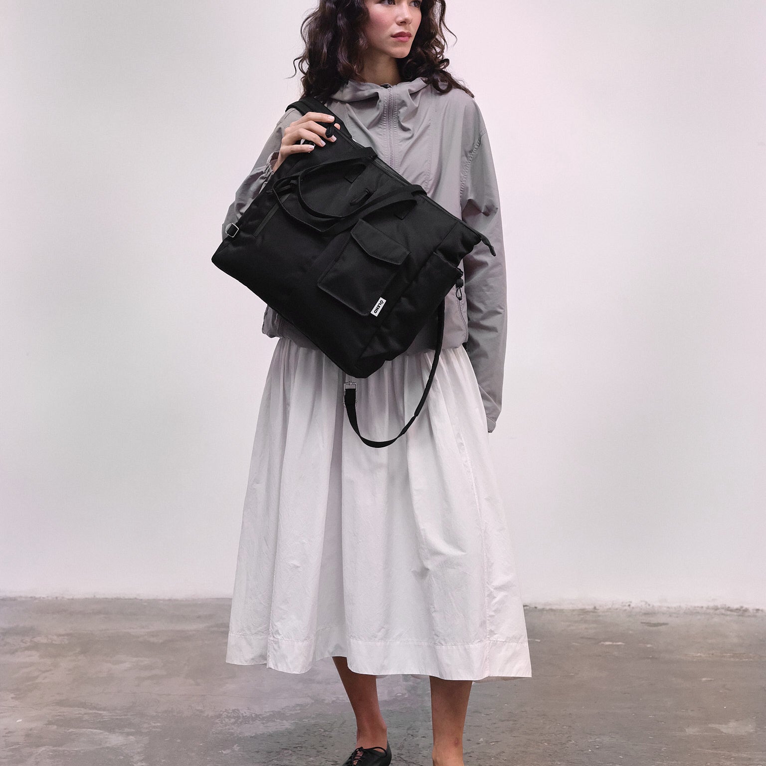 Find two removable straps and create up to 4 ways to carry this functional multibag: shoulder bag, backpack, cross body, handbag.