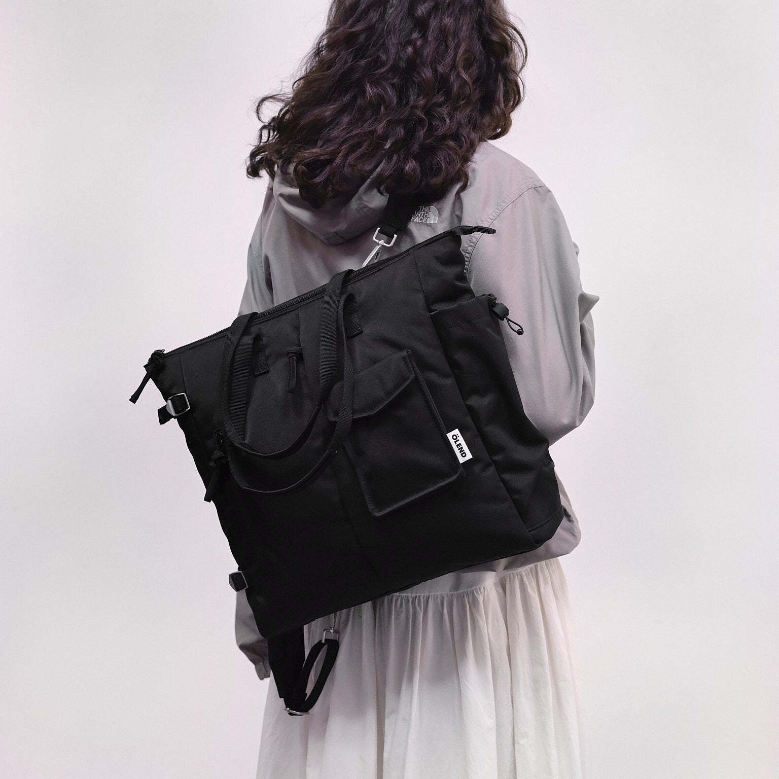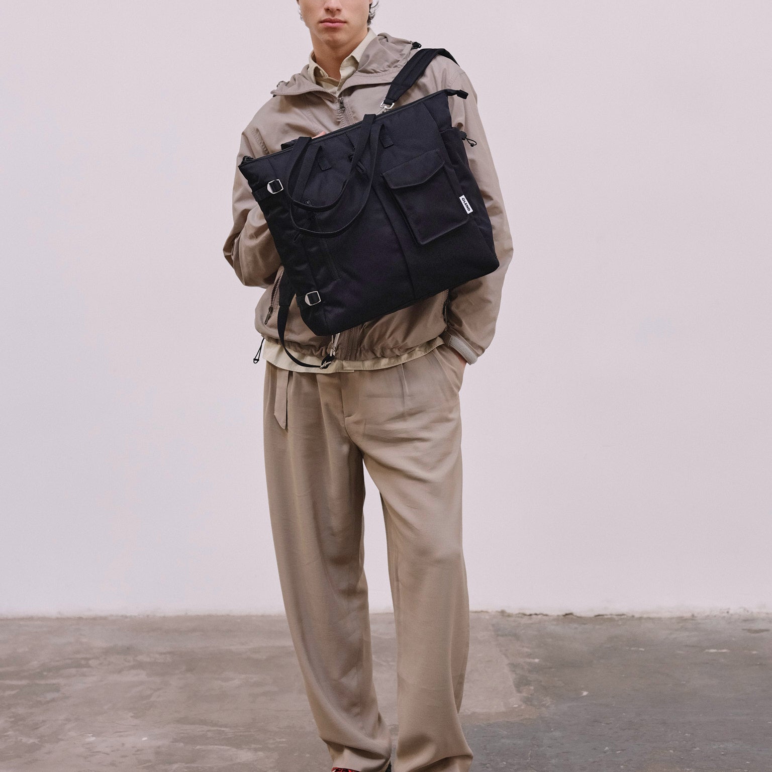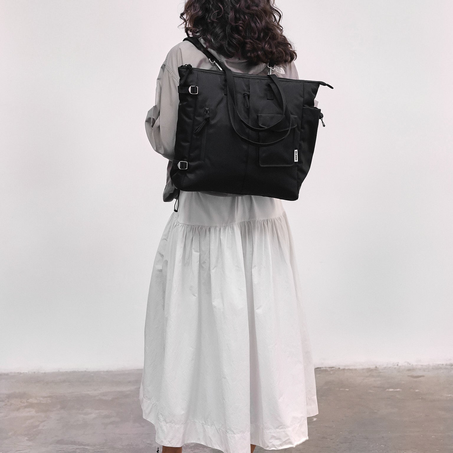 Find two removable straps and create up to 4 ways to carry this functional multibag: shoulder bag, backpack, cross body, handbag.