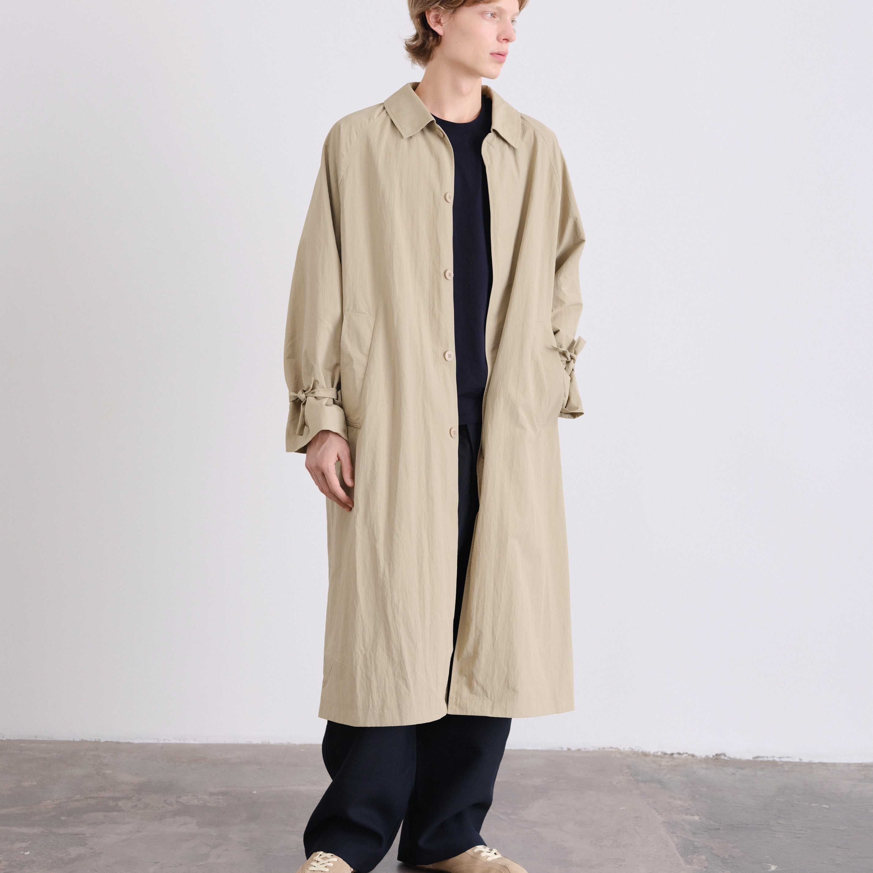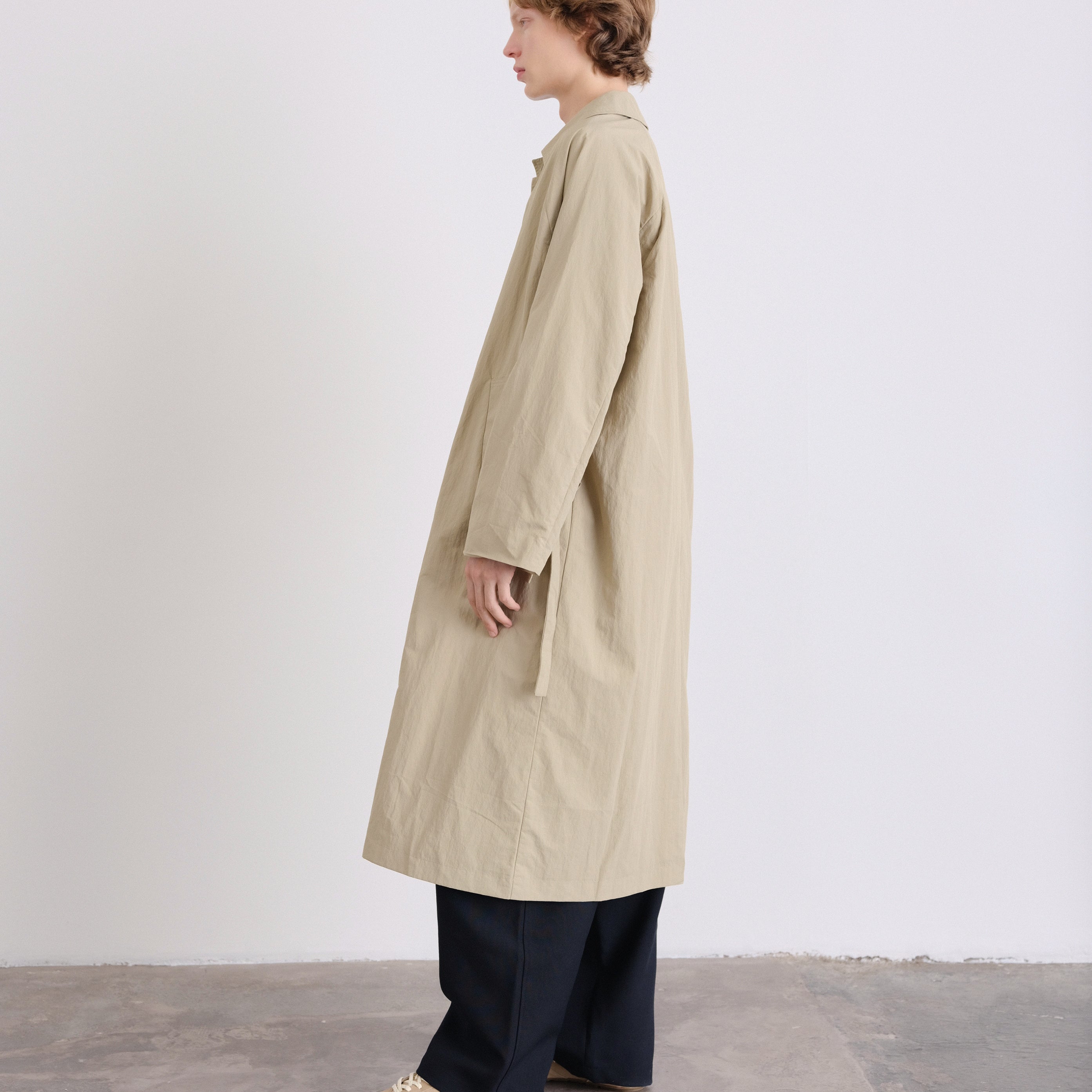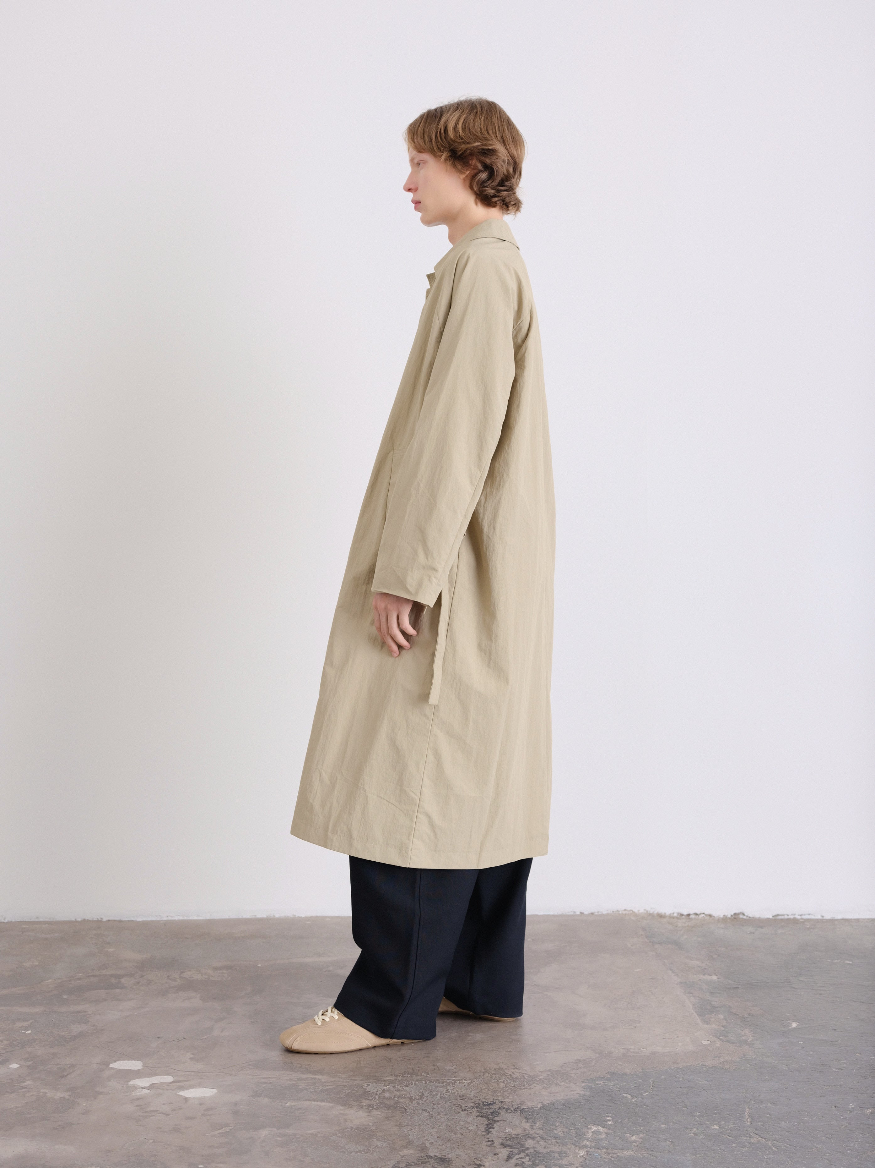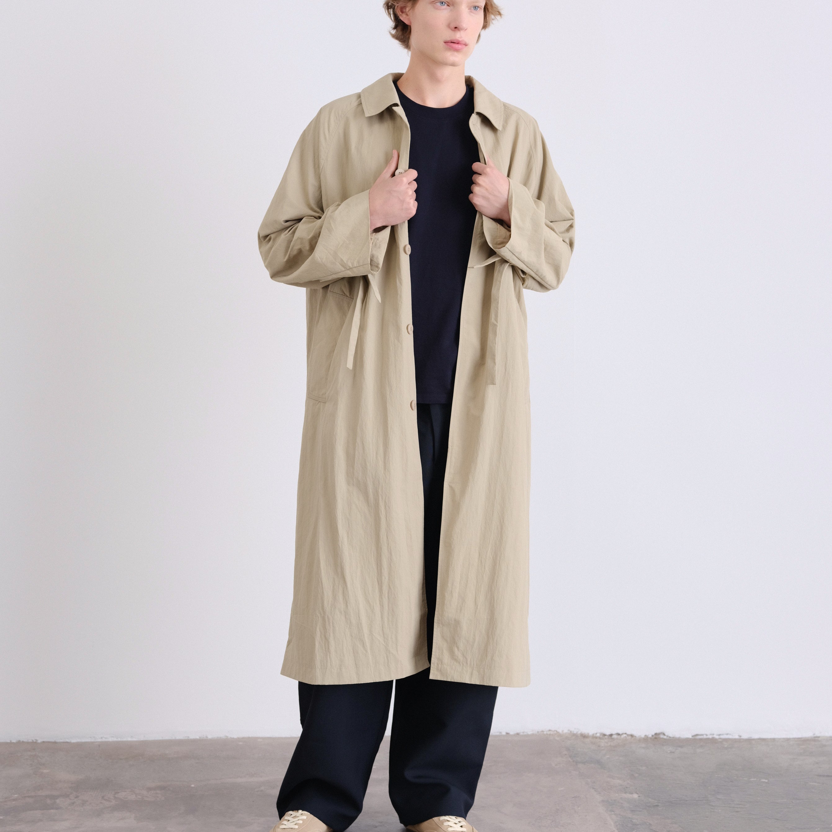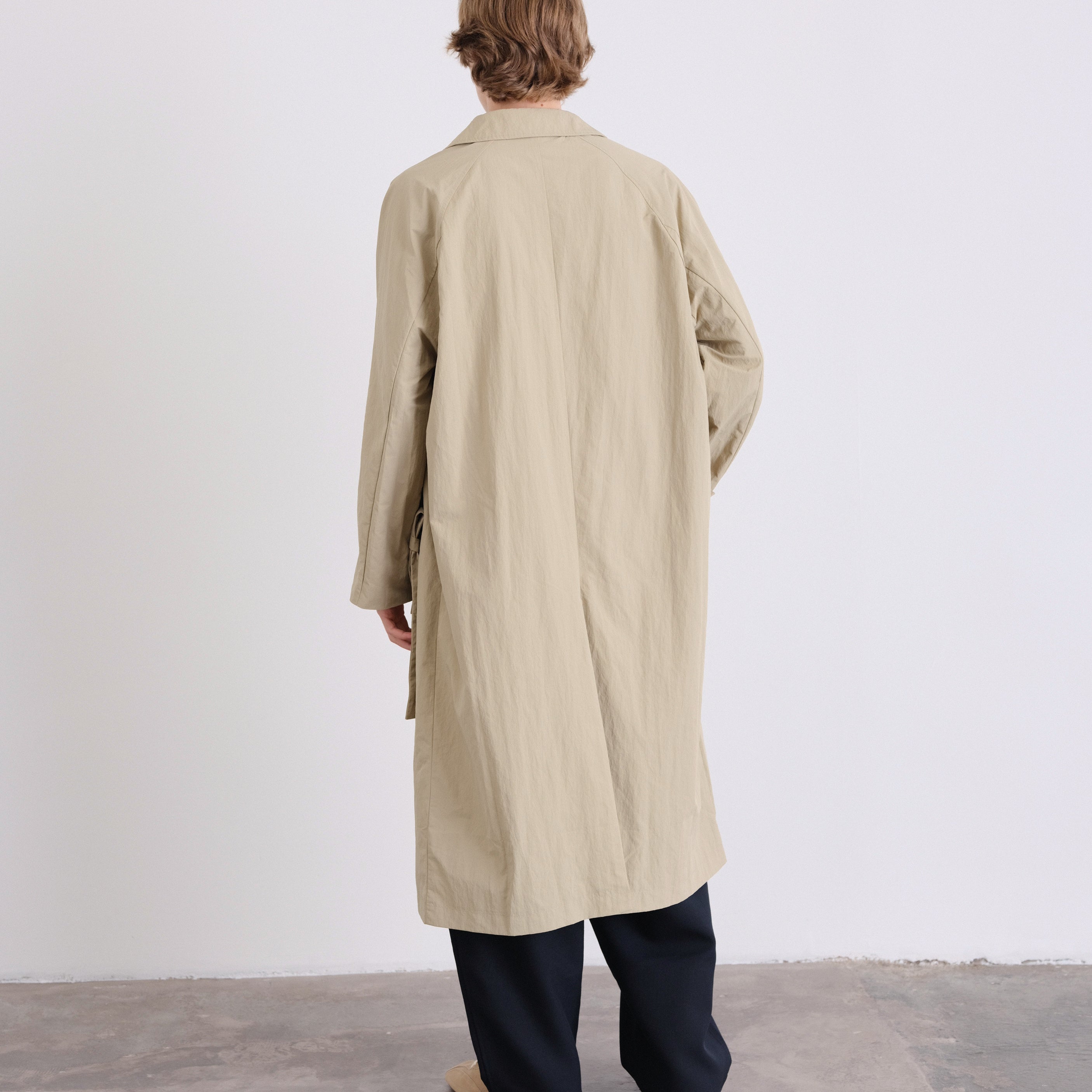 An elevated take on a timeless essential. This unisex, one-size trench features a refined oversized silhouette, designed to drape effortlessly on every body.