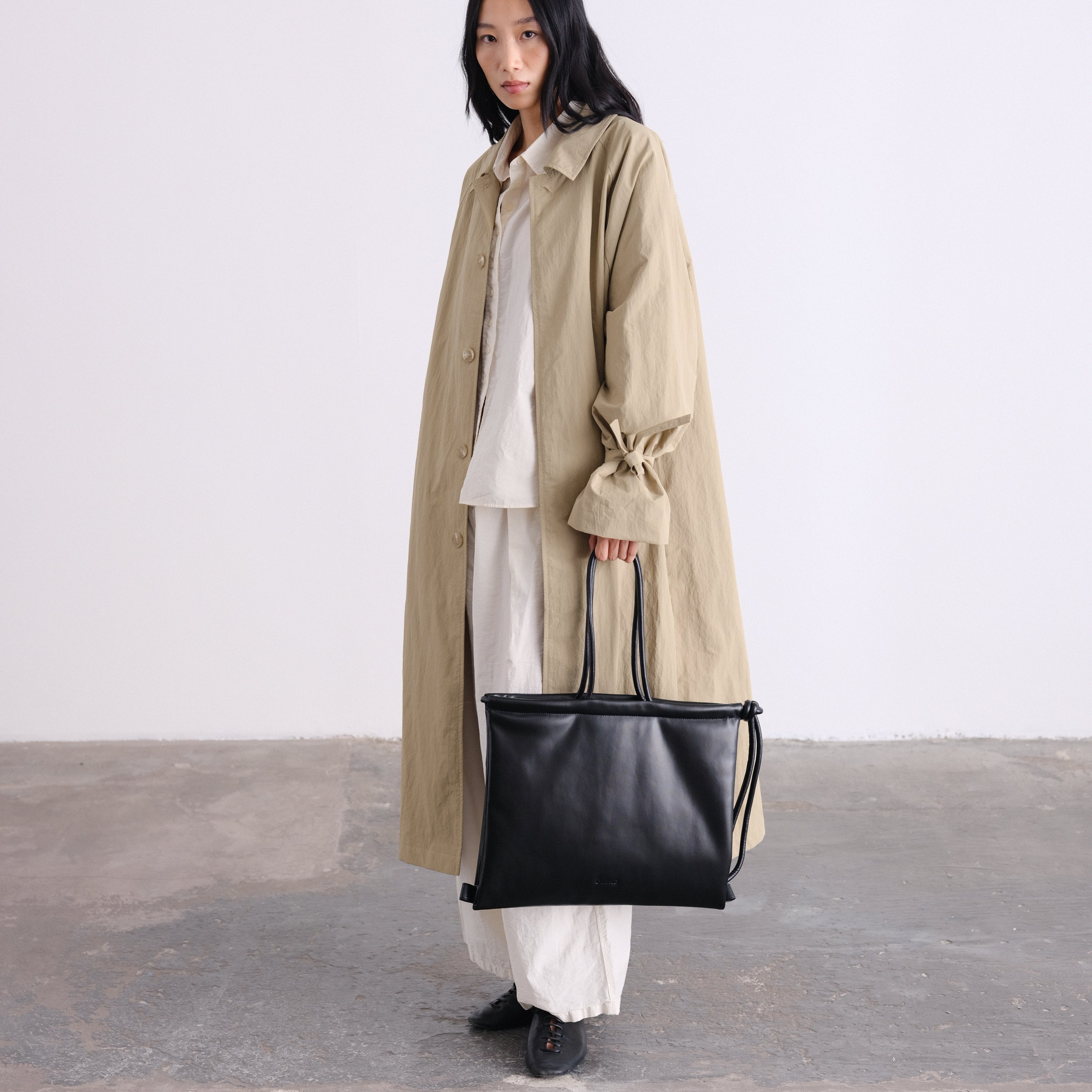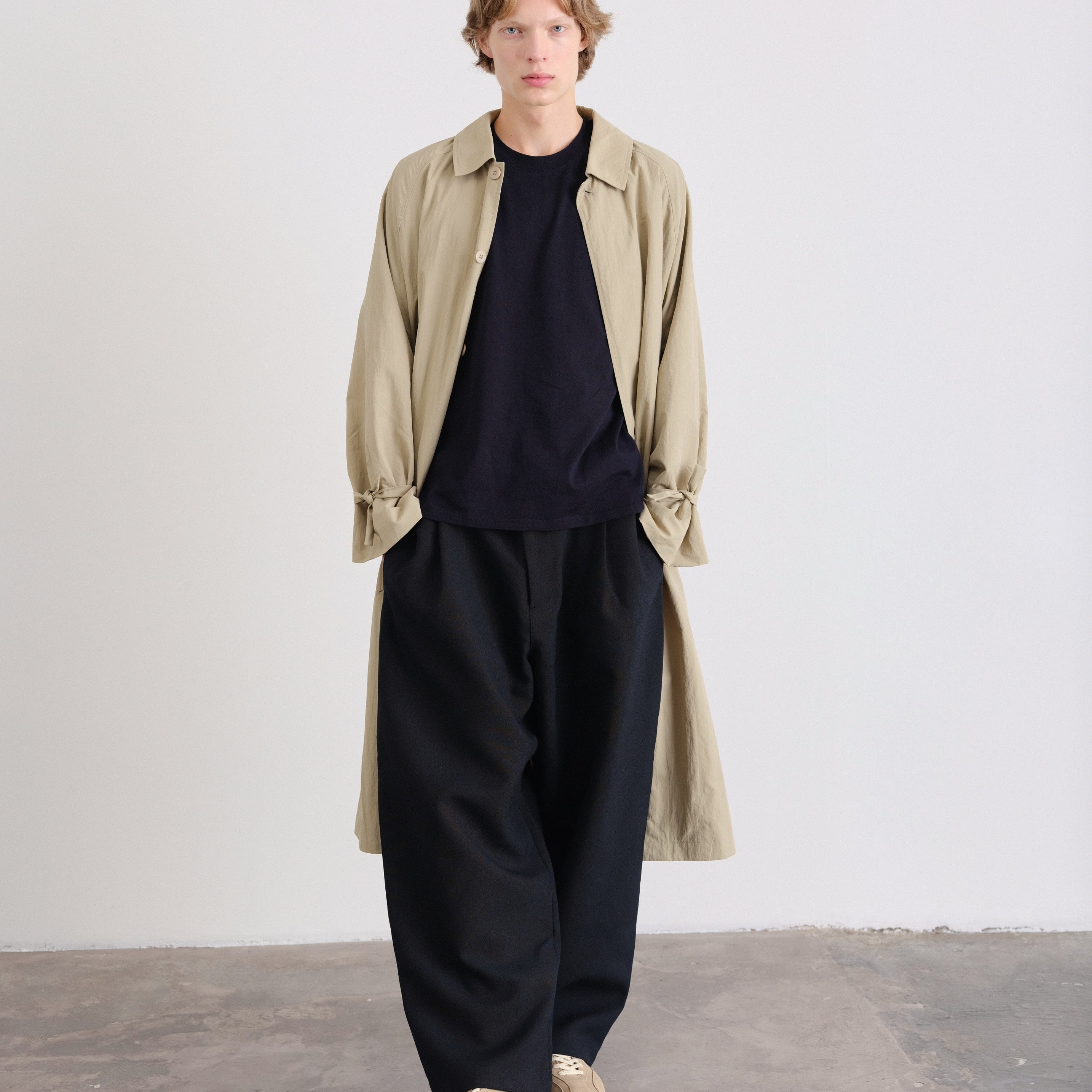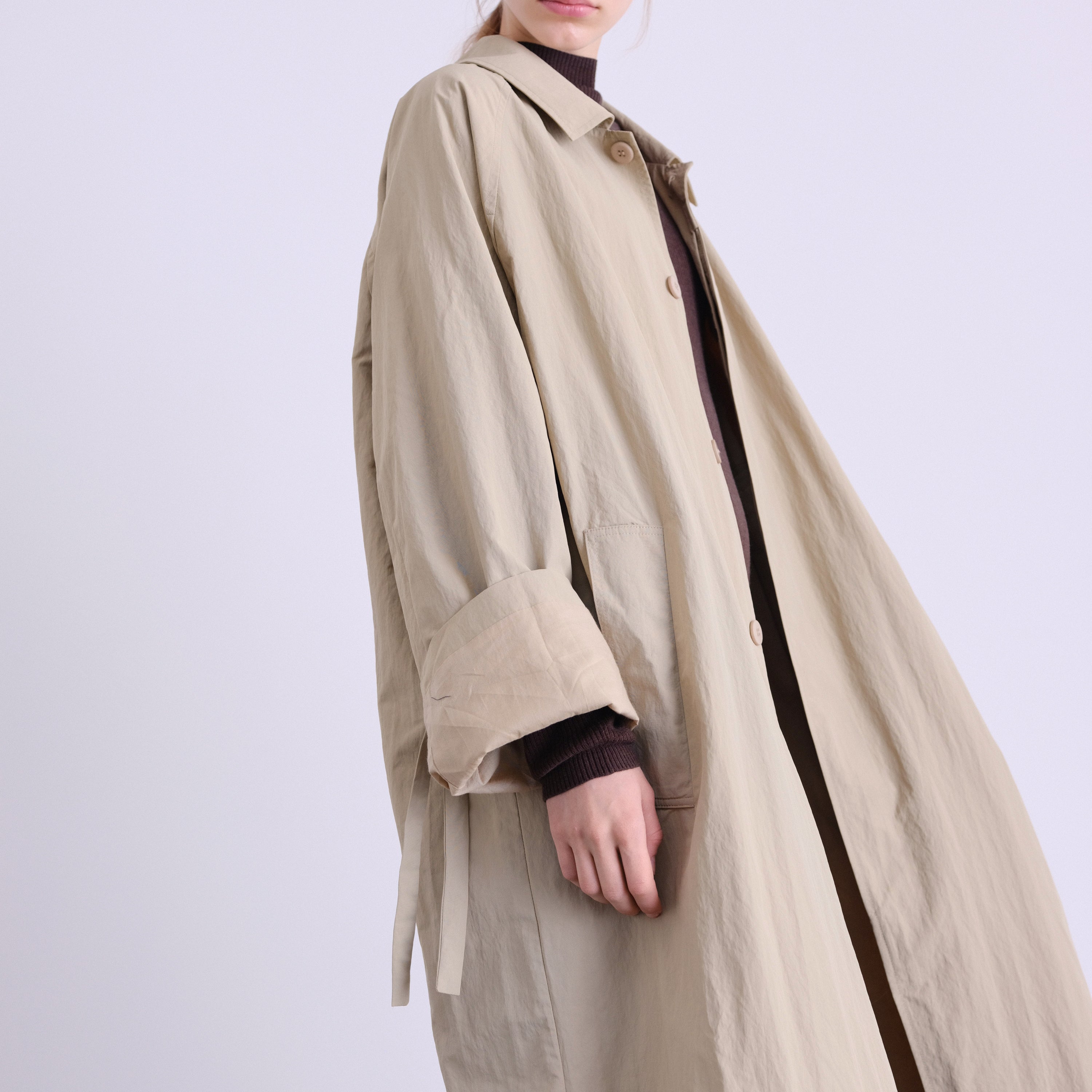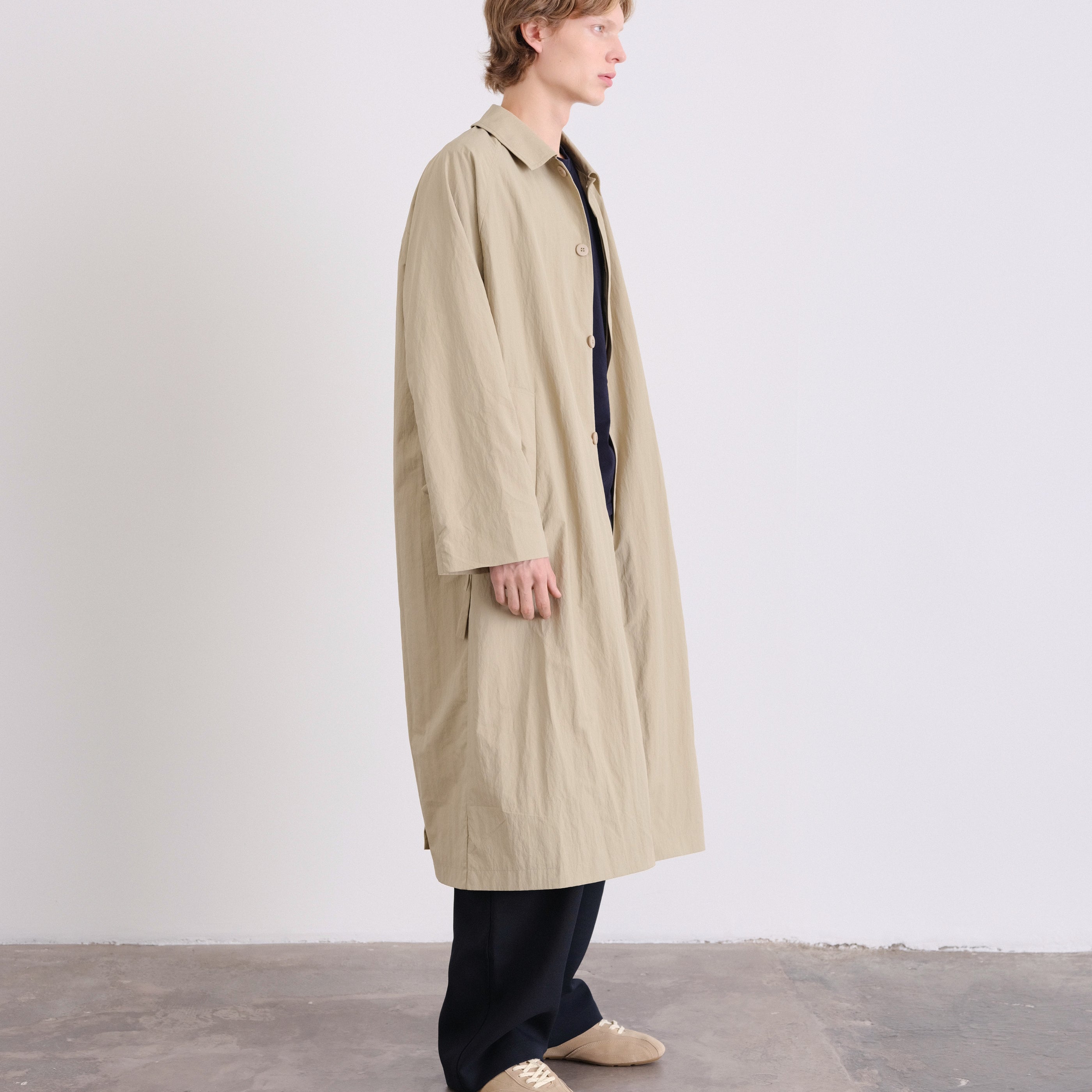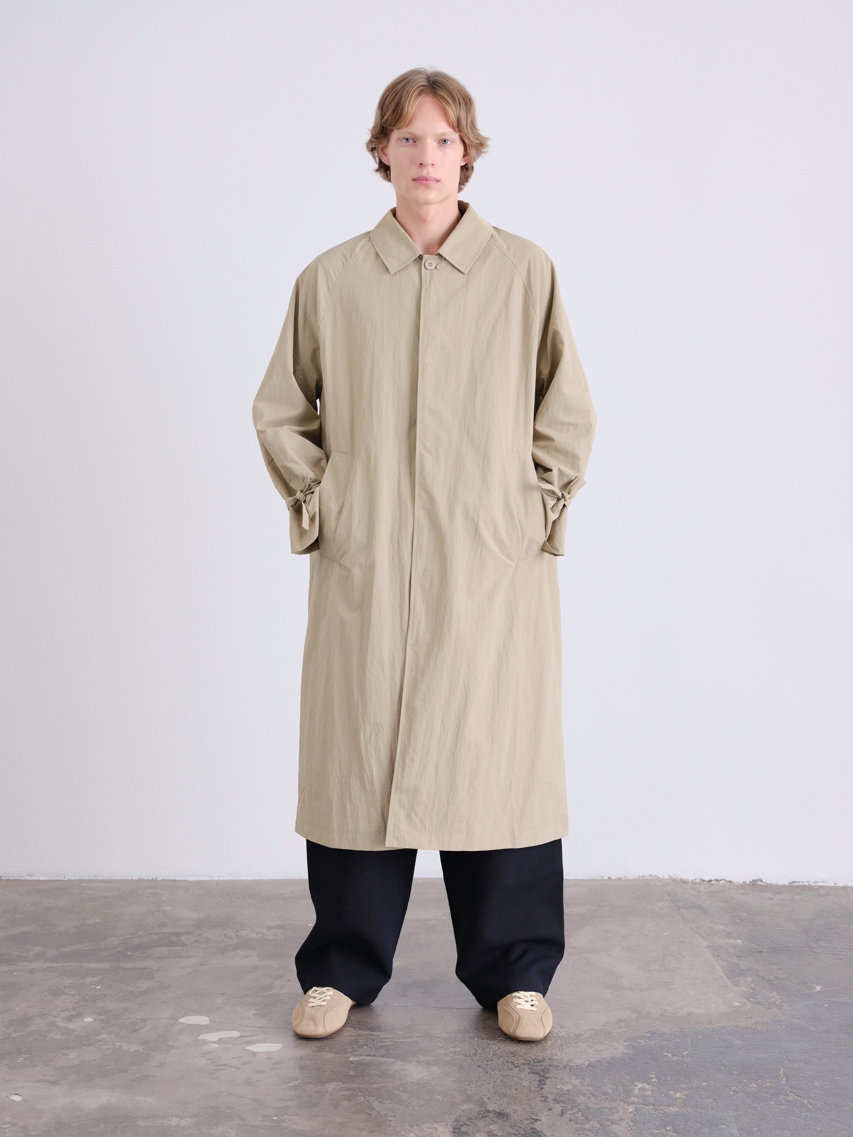 An elevated take on a timeless essential. This unisex, one-size trench features a refined oversized silhouette, designed to drape effortlessly on every body.