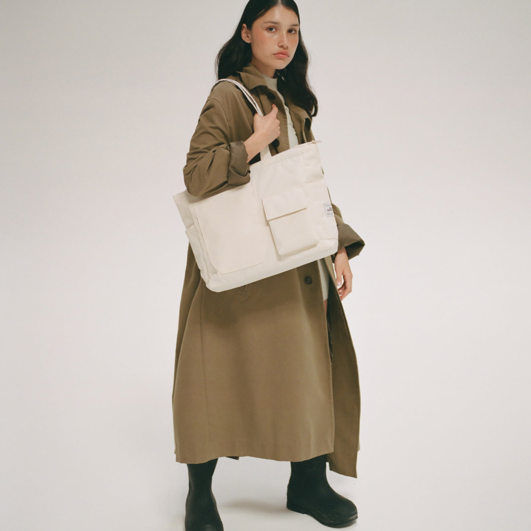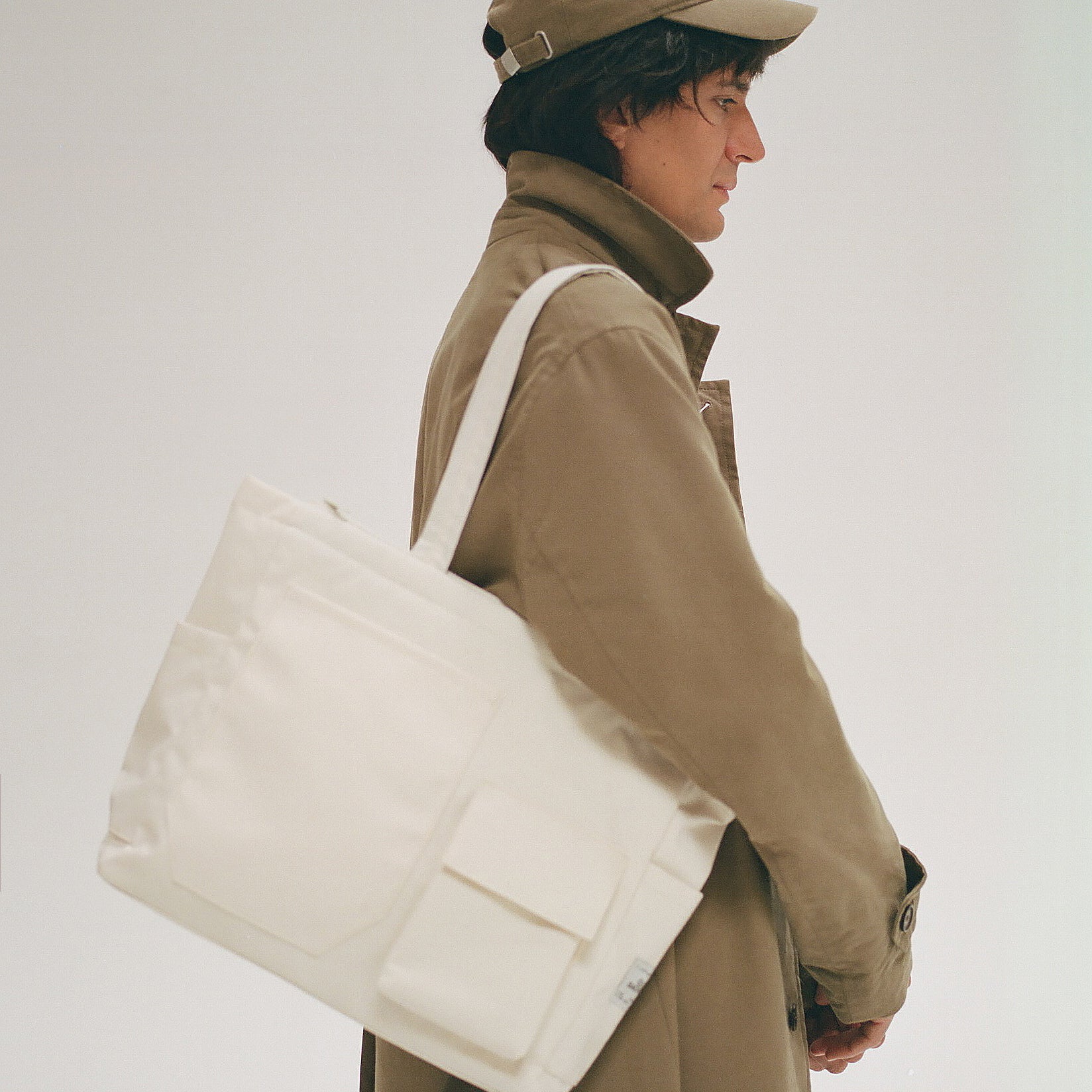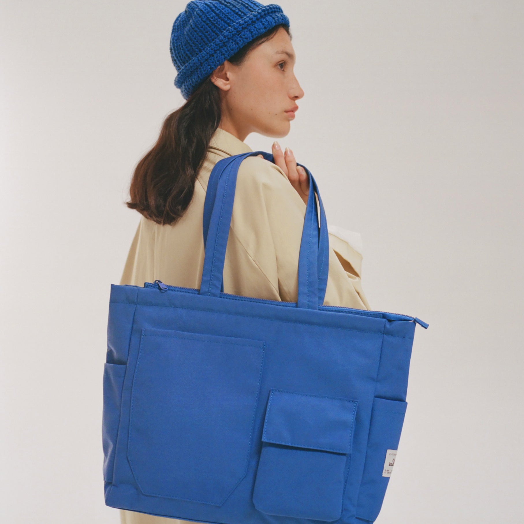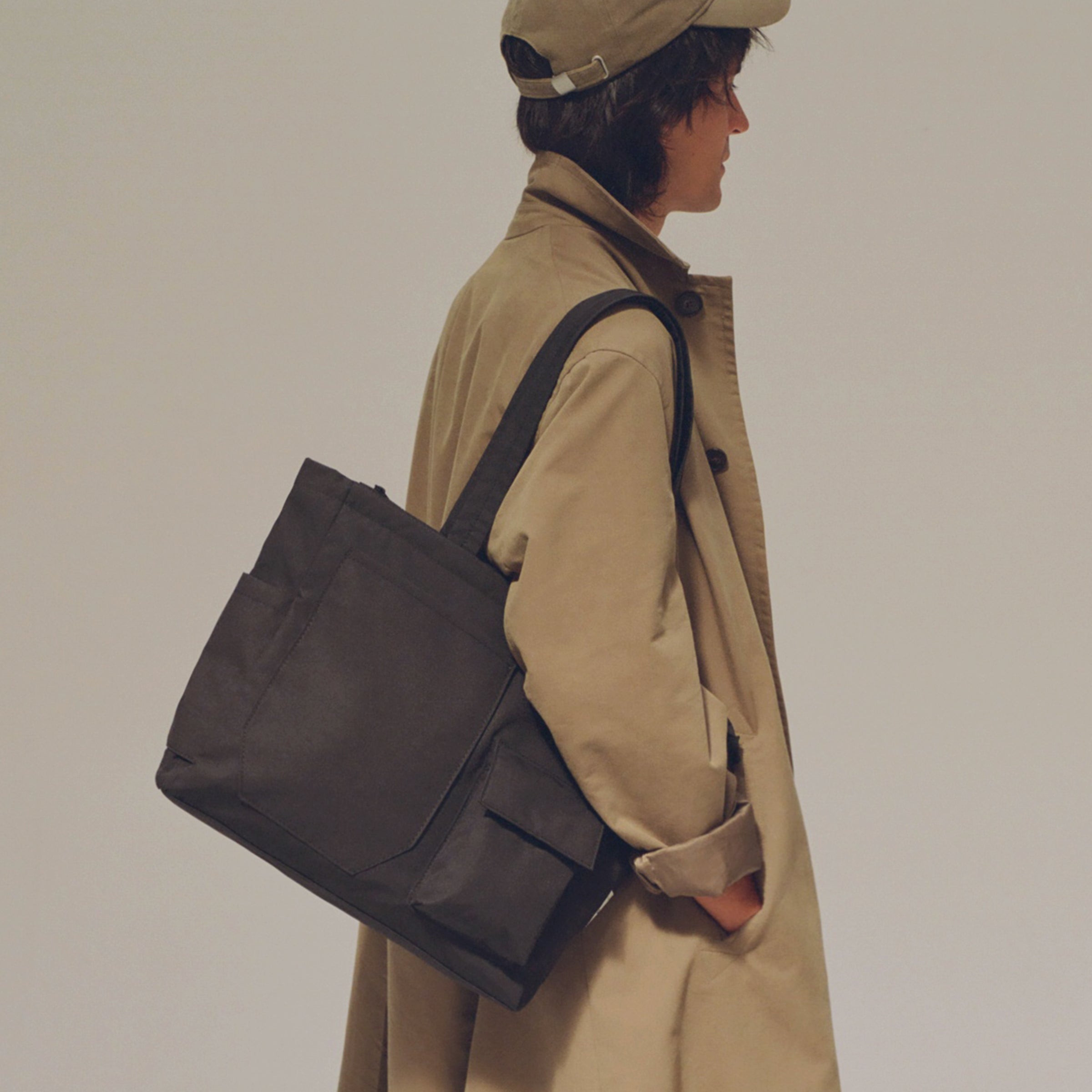 ワークウェアを思わせる独特なデザインで、整理するのに便利なフロントポケット×2、サイドポケット×2、背面にファスナー付き大型ポケットなどのさまざまなポケット付き。