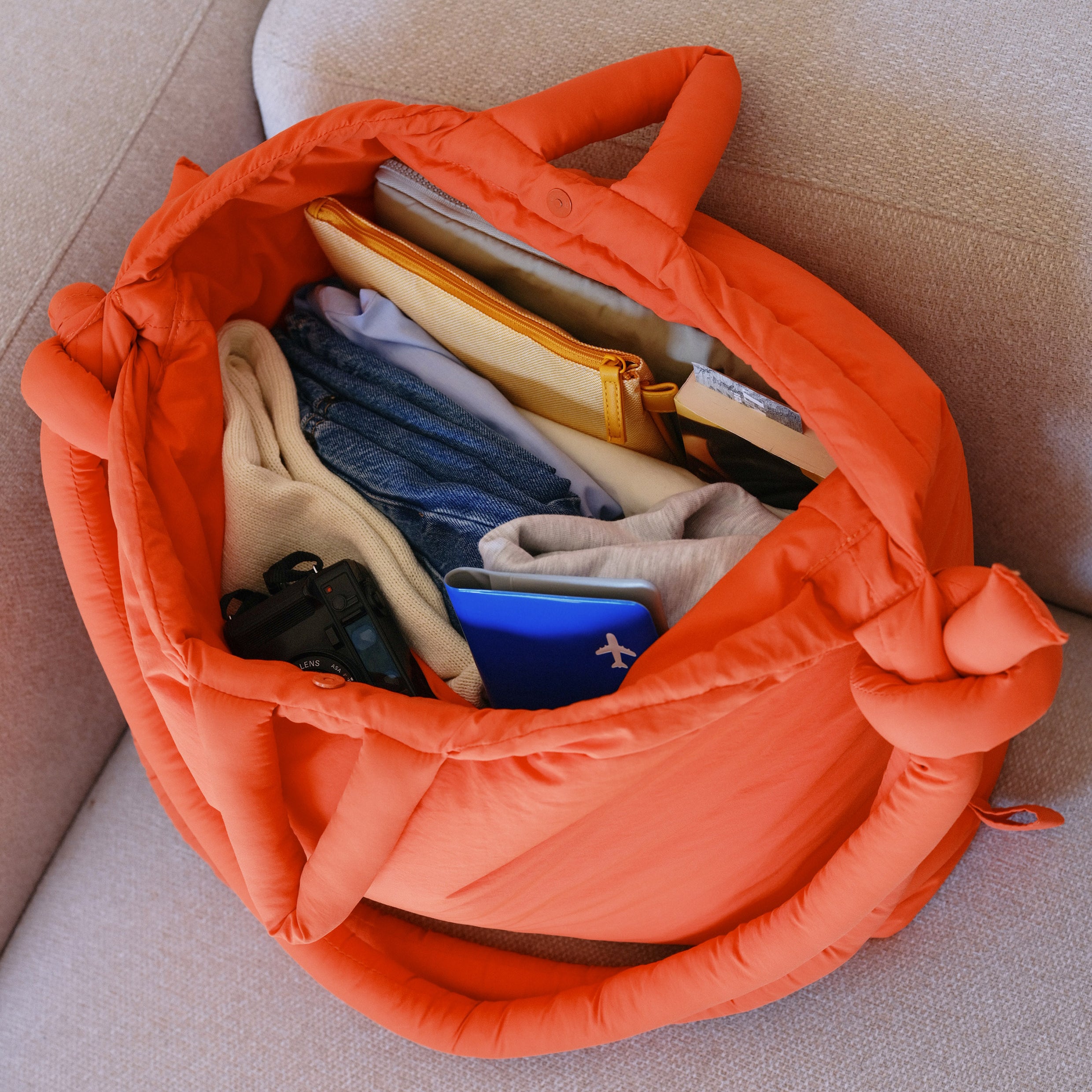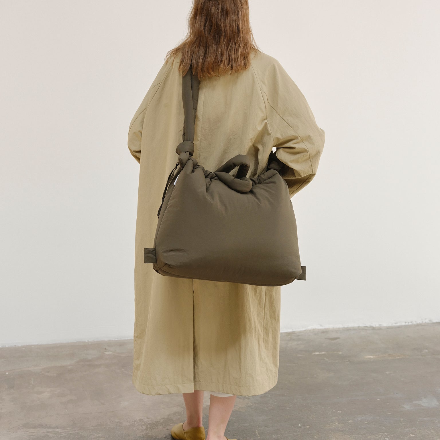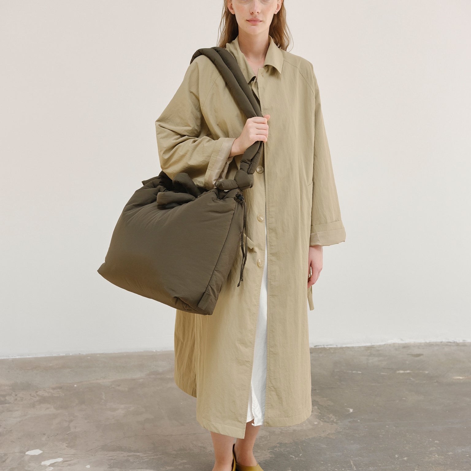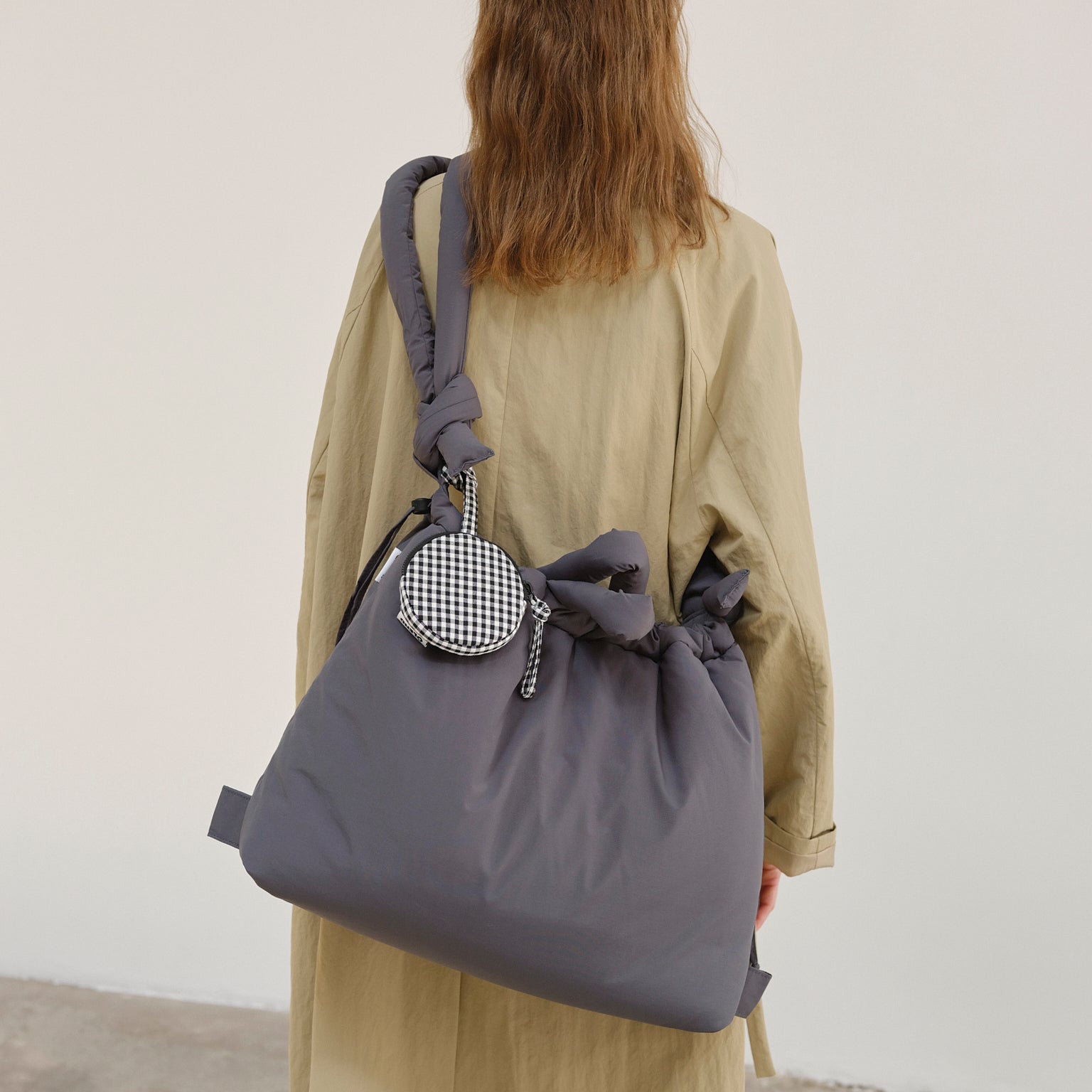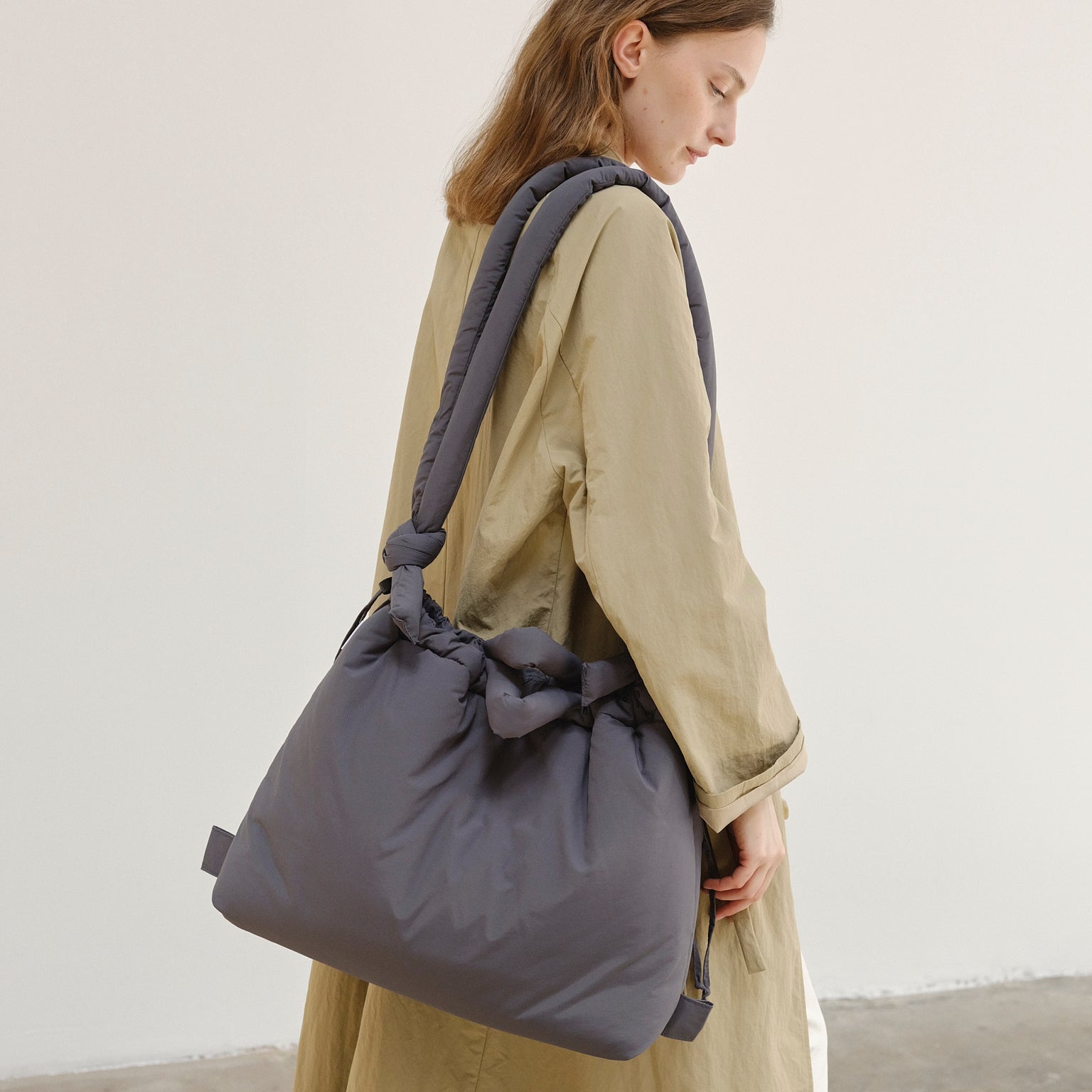 The Large Ona is made from light water-repellent recycled nylon. Our choice of nylon as well as the fluff are OEKO-TEX® STANDARD 100 certified to meet all quality and chemicals standards.