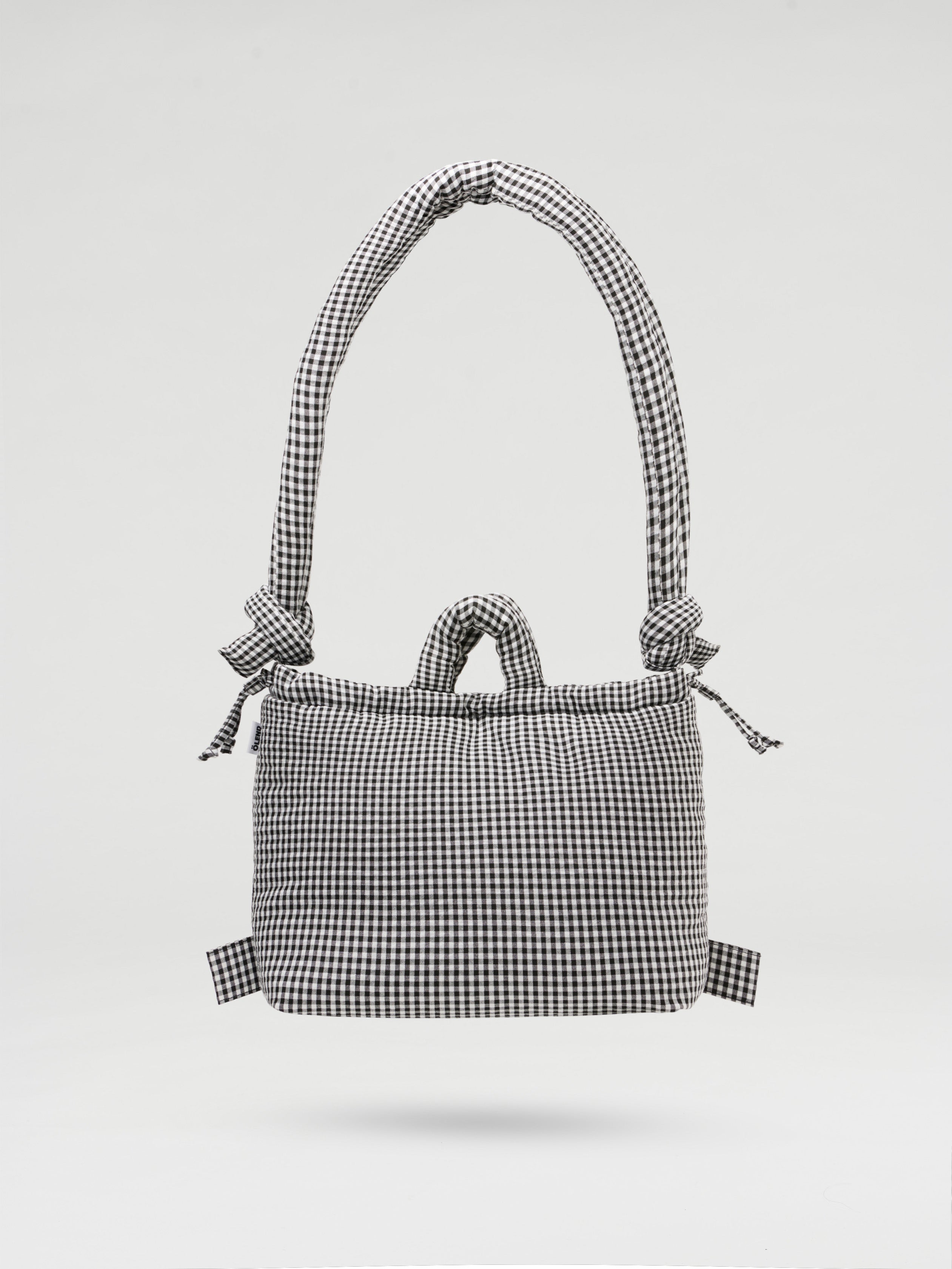 The compact size of our icon Ona Soft Bag. A soft, padded bag with a unique design. Made of a lightweight, padded fabric, giving it a cushioned look. The bag has two puffy straps that can be convertible into a backpack. It's designed to hold a fair amount of items (including a 14" laptop)while maintaining a chic, minimalist aesthetic.