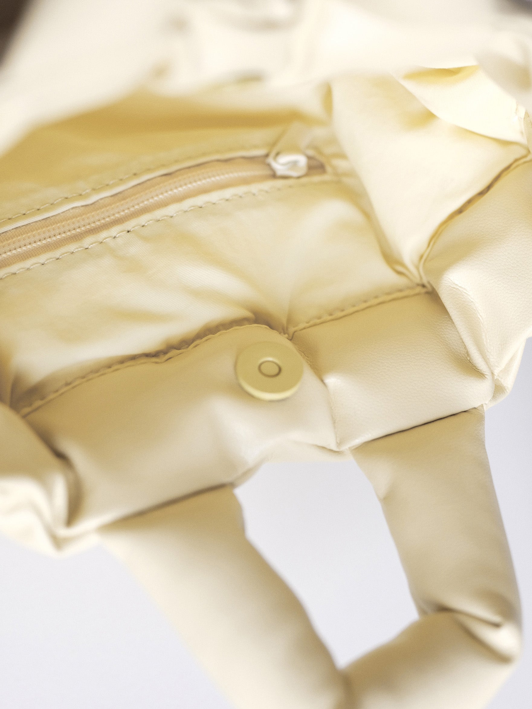 You can close the bag with the magnetic clasp. Keep your belongings organized with the zippered inner pocket.
