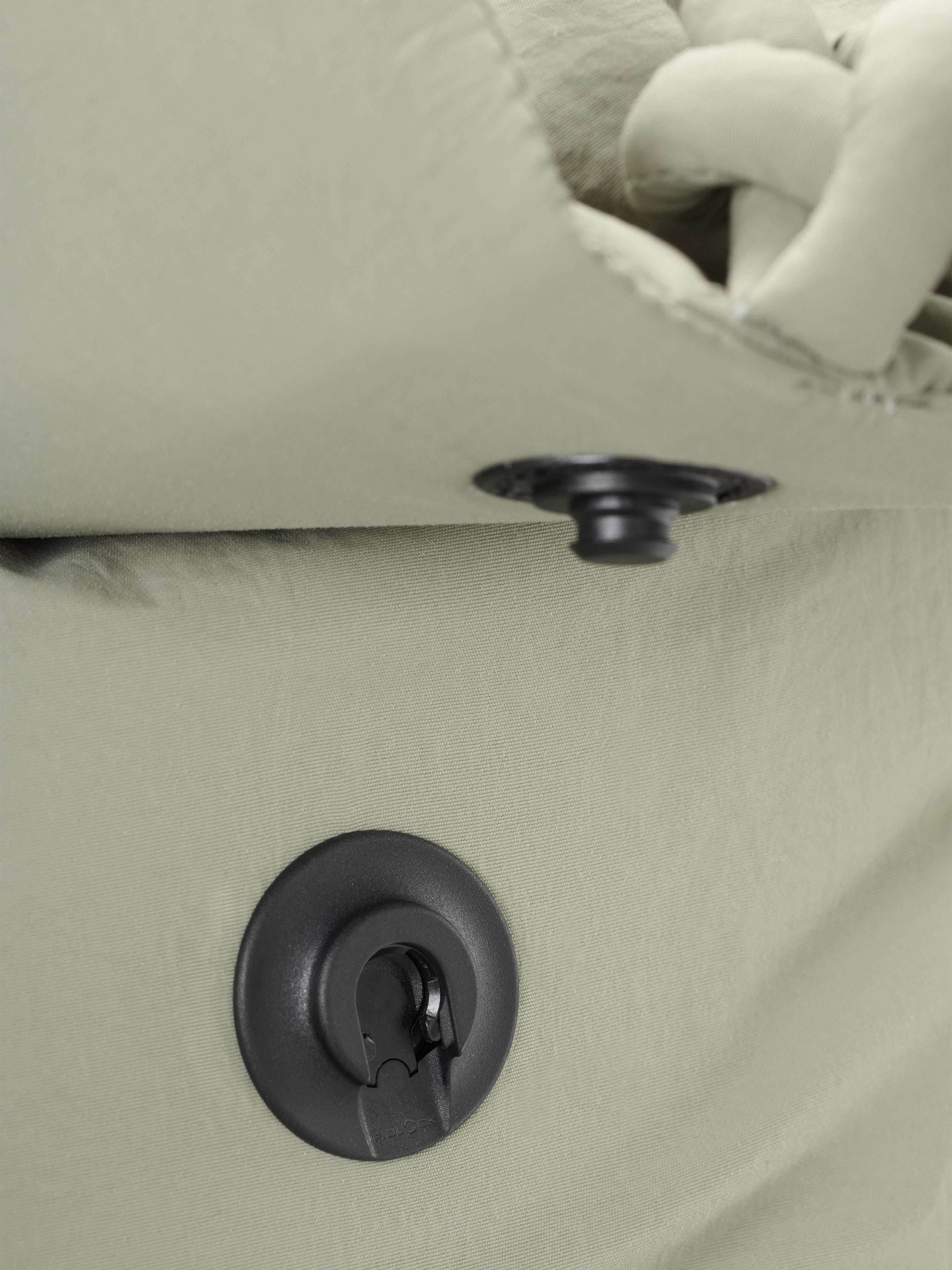 The Ona is made from light water-resistant nylon. Our choice of nylon as well as the fluff are OEKO-TEX® STANDARD 100 certified to meet all quality and chemicals standards.